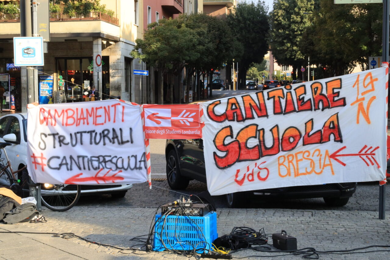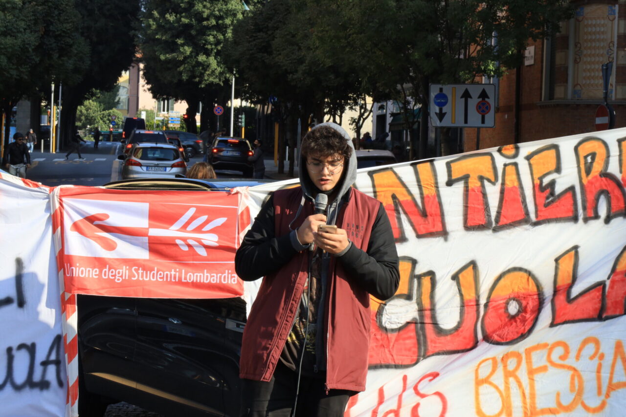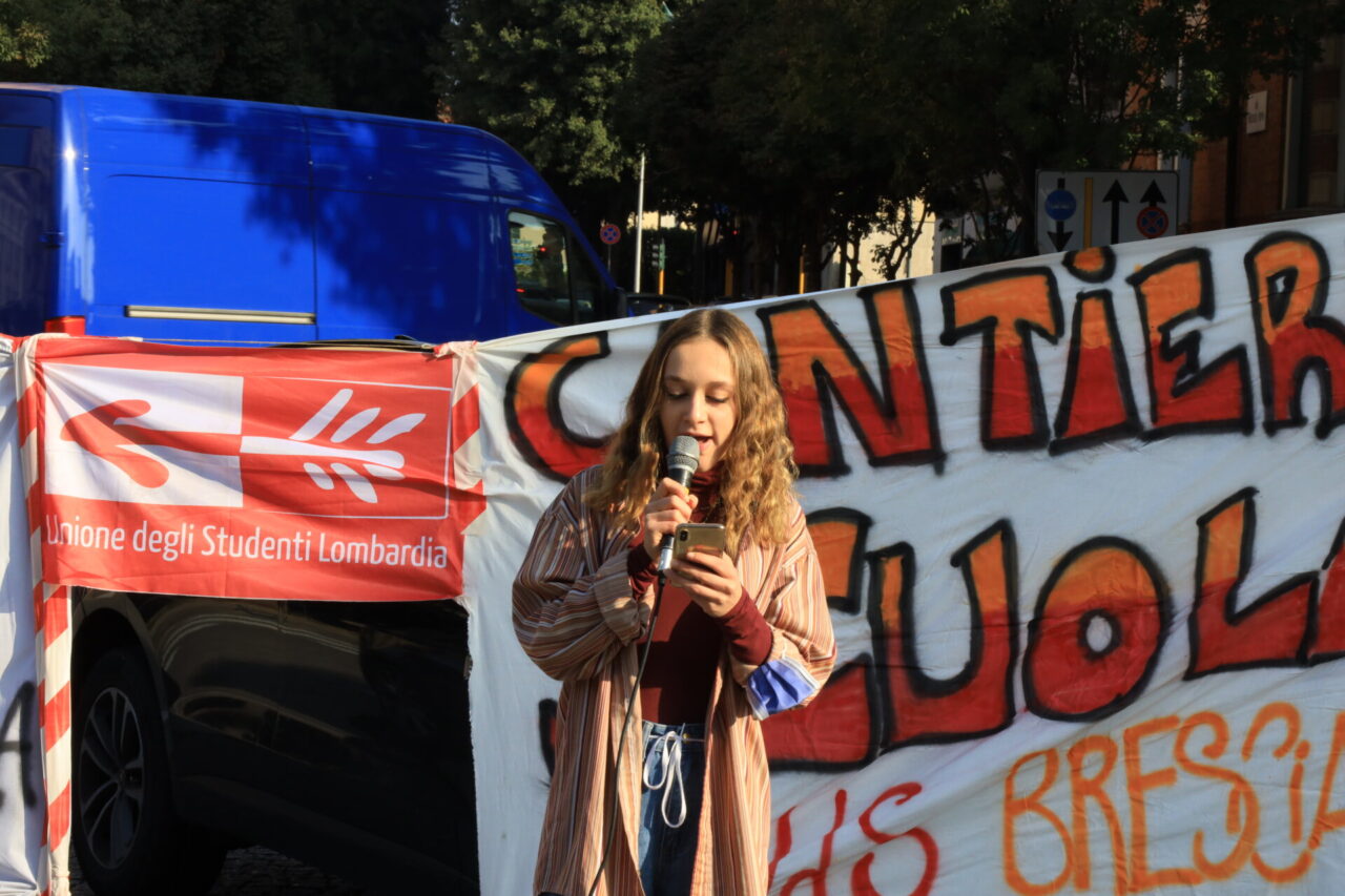 A palrare è Marta Stablum, che ha evidenziato quelli che sono i problemi che gli studenti stanno riscontrando. Ieri, sabato 23 ottobre, in stazione si sono presentati numerosi studenti provenienti da diversi istituti della provincia di Brescia, studi della situazione relativa al trasporto scolastico e desiderosi di un cambiamento nel servizio. A loro fianco anche i rappresentanti di molteplici realtà: Kollettivo Studenti in Lotta, NonUnaDiMeno, Fridays for Future, Cobas, NoTav e Pas (Priorità alla scuola).