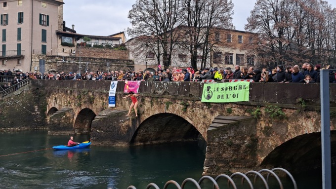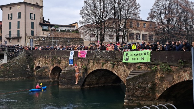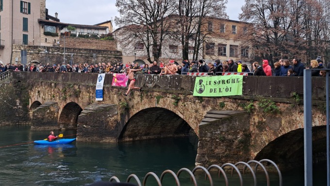Si è tenuta questa mattina (domenica 18 dicembre 2022) la terza edizione della manifestazione benefica promossa dal gruppo Le Sorghe de l’Òi in collaborazione con Acsi e Nuoto Master Brescia. Il tutto si è svolto con il supporto della Protezione Civile dei Vigili del Fuoco di Palazzolo sull’Oglio e della Croce Rossa di Palazzolo. Presenti, questi ultimi, sul fiume e sulla riva del fiume per supportare i tuffatori e aiutarli in caso di bisogno.