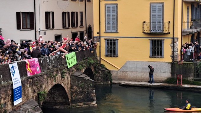 Un tuffo nelle acque gelide del fiume Oglio da Ponte Romano di Palazzolo sull’Oglio per Airno (Associazione Italiana per la Ricerca neuro-Oncologica).
