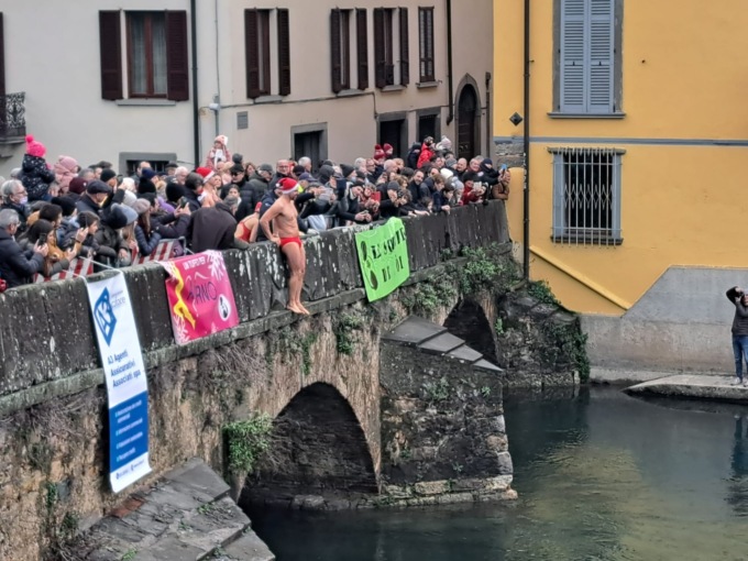 Sul ponte romano nel centro storico di Palazzolo un gruppo di coraggiosi vestiti con i colori del Natale, si sono gettati nelle acque del fiume Oglio: un tuffo che ha l’obiettivo di sostenere l’attivazione di un servizio di riabilitazione neuro-motoria per i pazienti affetti da neoplasie cerebrali. Una manifestazione all’insegna del Natale, della solidarietà e, ovviamente, di un pizzico di pazzia. Sicuramente un grande successo.