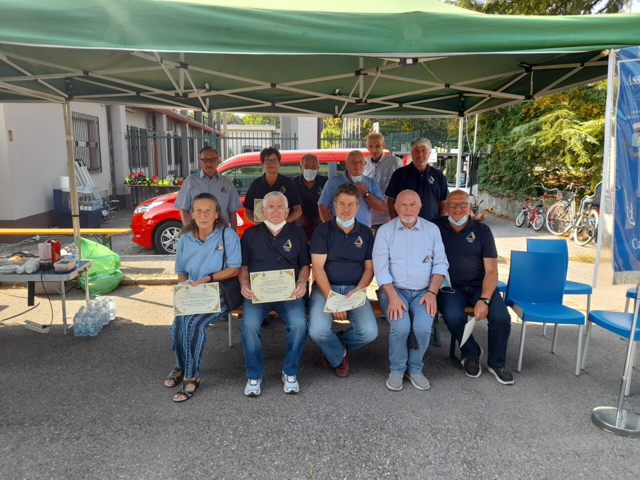 Prima dell’inizio delle esercitazioni ai membri della Protezione civile di Capriano e Azzano e del gruppo Volontari Solidarietà sono stati consegnati degli attestati di riconoscimento per il lavoro svolto nel sociale e per la sicurezza del territorio. Presenti anche il parroco don Renato, che ha benedetto gli ultimi mezzi acquisiti dalle Giubbe Gialle, il vicesindaco di Azzano Mella, Matteo Ferrari, Ennio Bertoglio e Mariarosa Pluda, rappresentanti del Ccv (Comitato di Coordinamento delle Organizzazioni di Volontariato di Protezione civile) di Brescia.