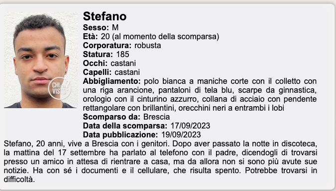 La famiglia di Stefano chiede la massima collaborazione , chiunque abbia notizie contatti il 112.
