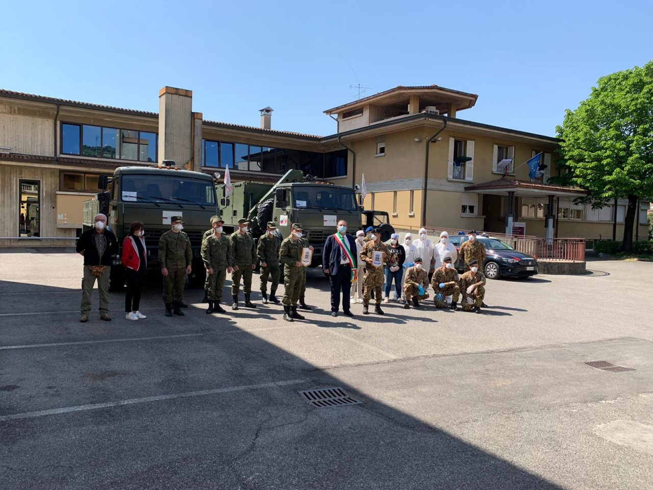 25 Aprile diverso a Coccaglio con le sanificazioni dell’esercito. Ieri, i militari hanno fatto tappa alla Fondazione Mazzocchi.