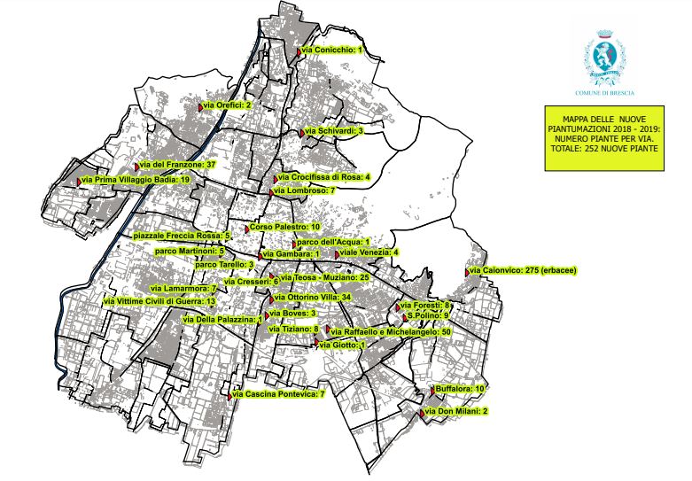 Una mole di 252 nuove piante andranno ad arricchire il patrimonio arboreo cittadino, un progetto che era stato già pianificato e approvato prima dei danni causati agli alberi dall’ondata di maltempo, per i quali verrà stilato prossimamente un altro piano d’azione. Tra i luoghi interessati dal progetto innanzitutto ci sarà Via Ottorino Villa, con l’abbattimento di 21 piante con relativa sostituzione. Il viale alberato verrà ricreato completamente solo per il lato nord della strada con 34 nuove piante, ed i lavori cominceranno già da domani. Successivamente le operazioni si concentreranno su via del Franzone. Dove, dopo gli abbattimenti di agosto, si è optato per la sostituzione dei pioppi bianchi con 37 Frassini Orniello, in quanto hanno una crescita più lenta e meno bisogno di manutenzione, e saranno posizionati entro fine novembre. Dopodichè saranno sostituite anche le 10 Camelie di Corso Palestro. Tutti gli interventi, saranno conclusi, secondo il programma entro natale. Oltre agli alberi, in via Caionvico saranno piantate anche 275 erbacee. Il costo dei lavori sarà di 300 mila euro per la fornitura delle piante, da addizionare ai costi di manutenzione successivi.