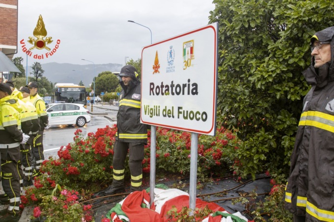 28esimo Raduno Nazionale dei Vigili del Fuoco, inaugurata una rotonda in via Scuole a Brescia in prossimità del comando.