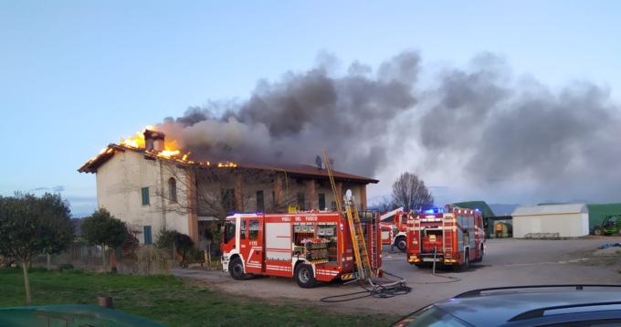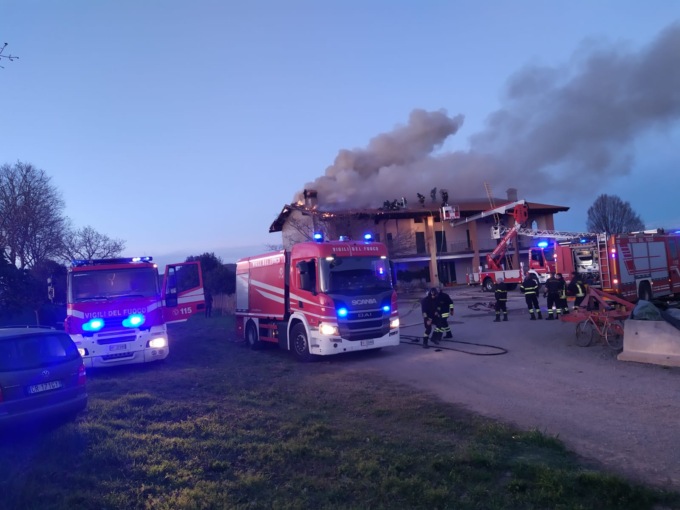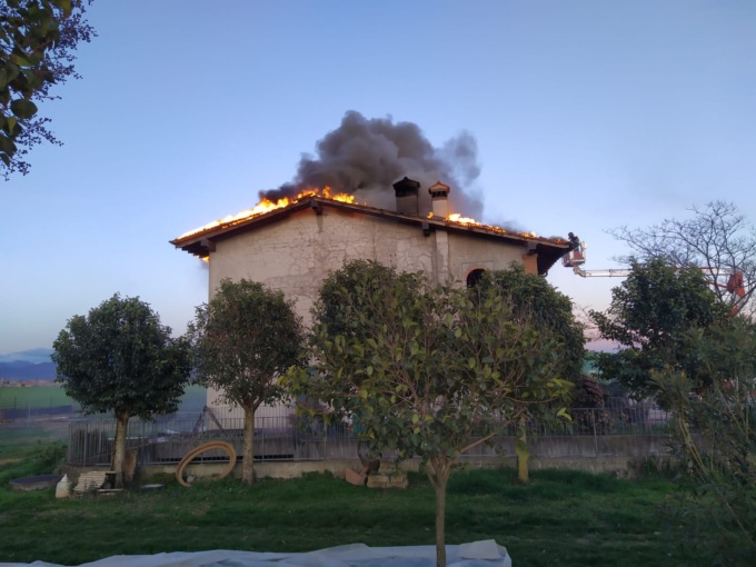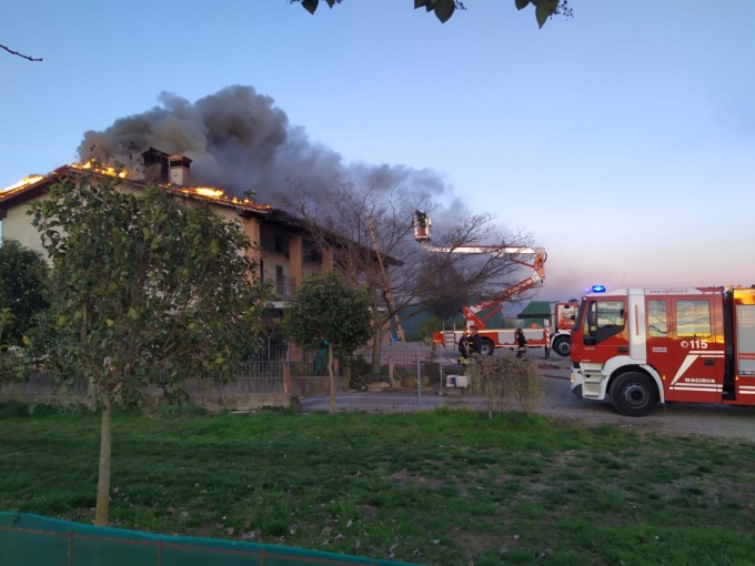 E’ successo poco prima delle 18 di oggi, sabato 11 marzo. Una parte del tetto di un cascinale ha preso fuoco.