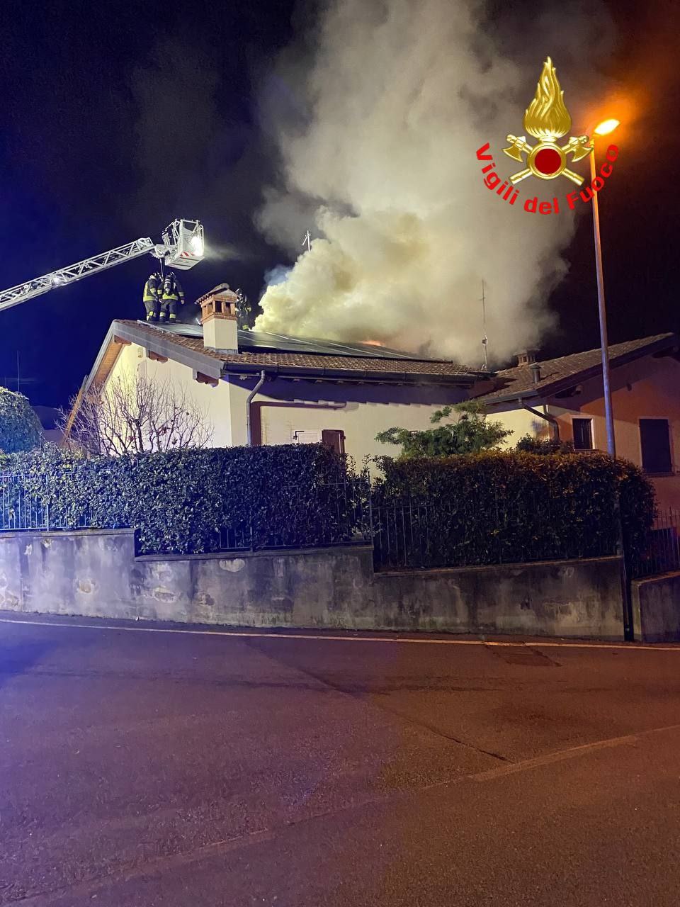 A fuoco il tetto di un’abitazione a Monticelli Brusati, l’intervento dei Vigili del Fuoco.