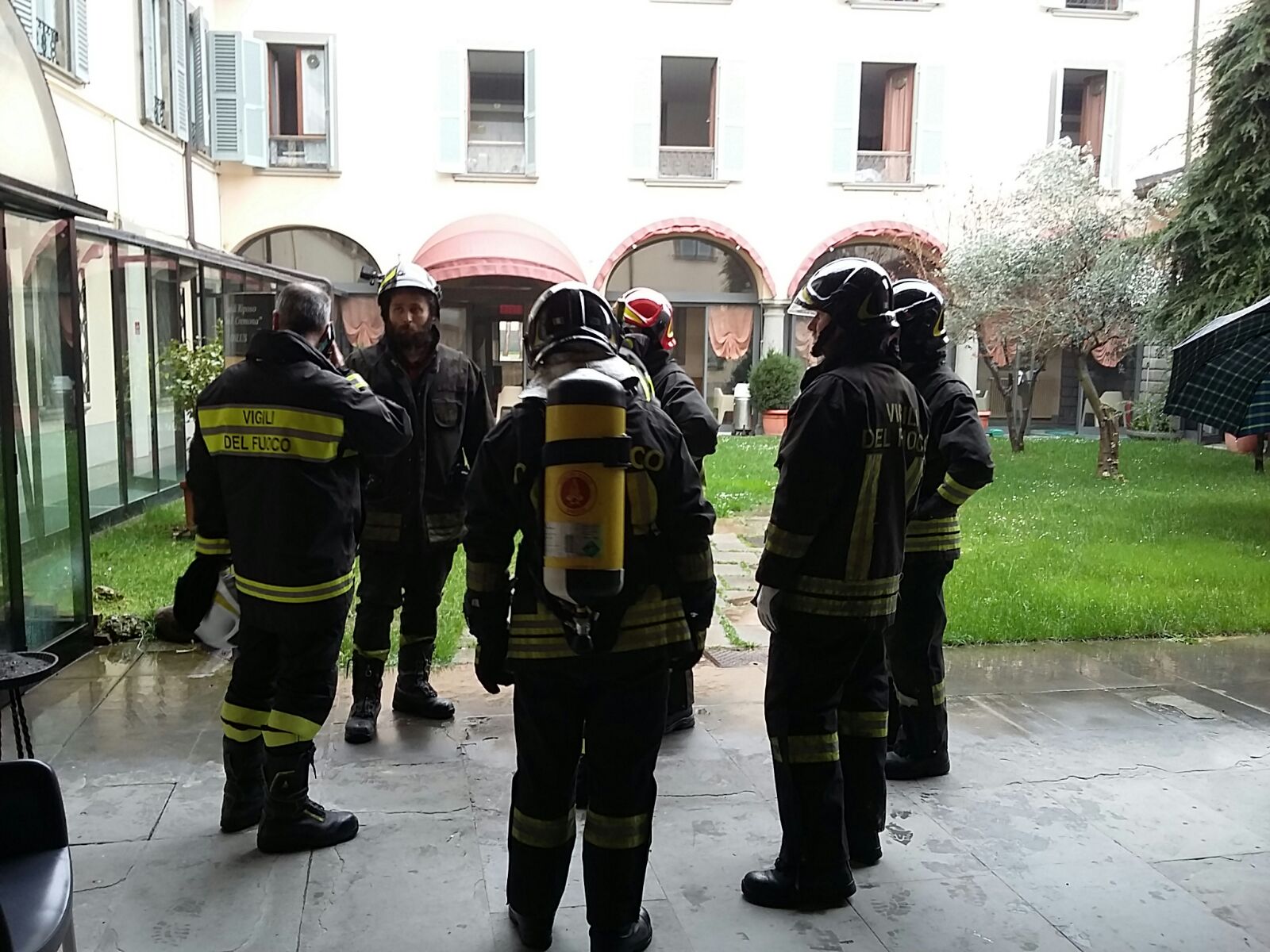 L’incendio in realtà si è svolto in un deposito al pianterreno. Il problema sono state le finestre aperte alle stanze dei piani alti: il fumo fuoriuscito dall’incendio, subito domato, ha quindi danneggiato operatori e anziani presenti in casa di riposo.