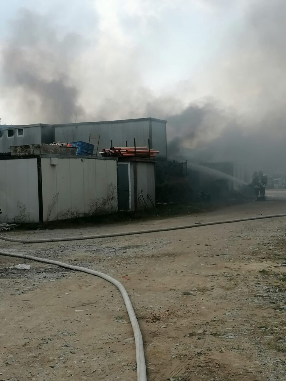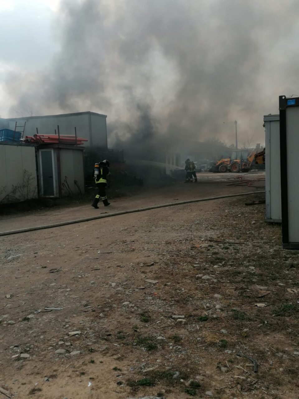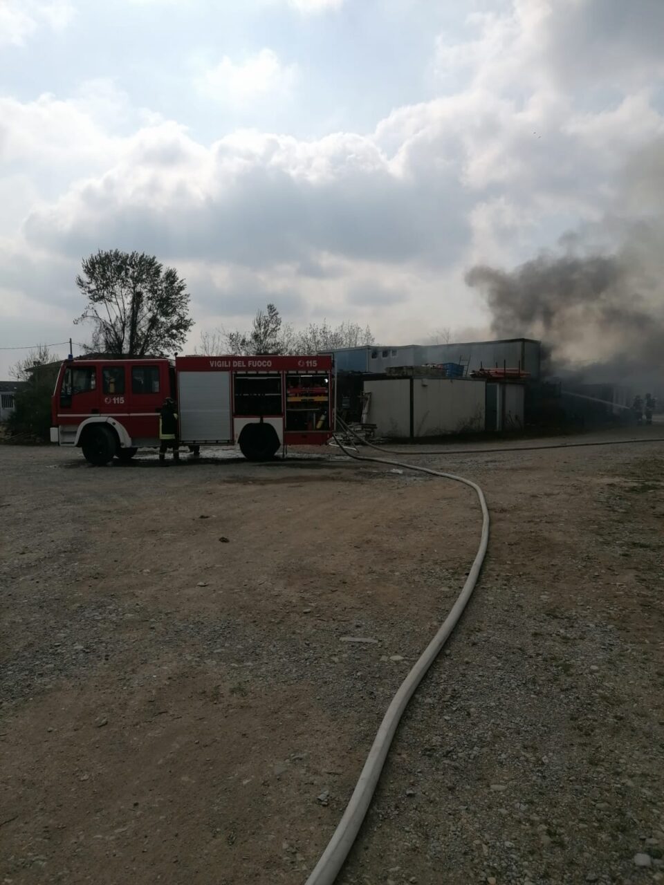 Fuoco in un cantiere edile a Pontoglio: pompieri in azionee