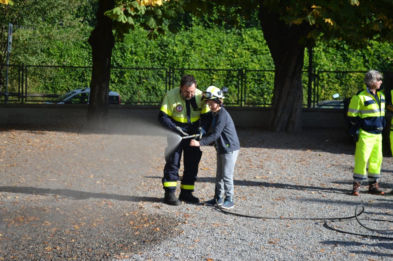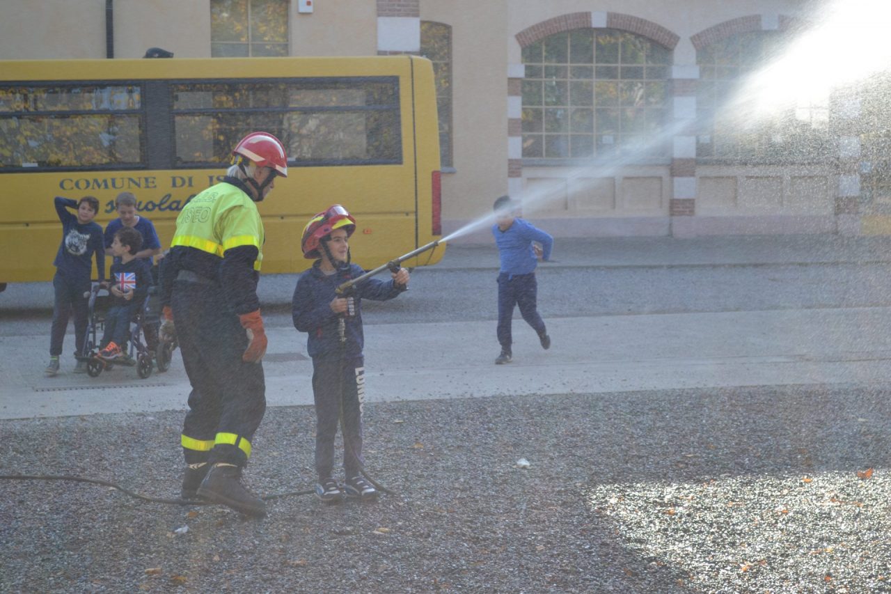 “Ormai sono cinque anni che veniamo a scuola per far vedere ai bambini chi siamo e cosa facciamo – ha spiegato soddisfatto il capogruppo, Michele Agosta, durante l’esercitazione pratica – Gli alunni sono sempre attenti e pronti a cimentarsi con l’idrante. Si divertono. Speriamo che un domani diventino volontari anche loro”.