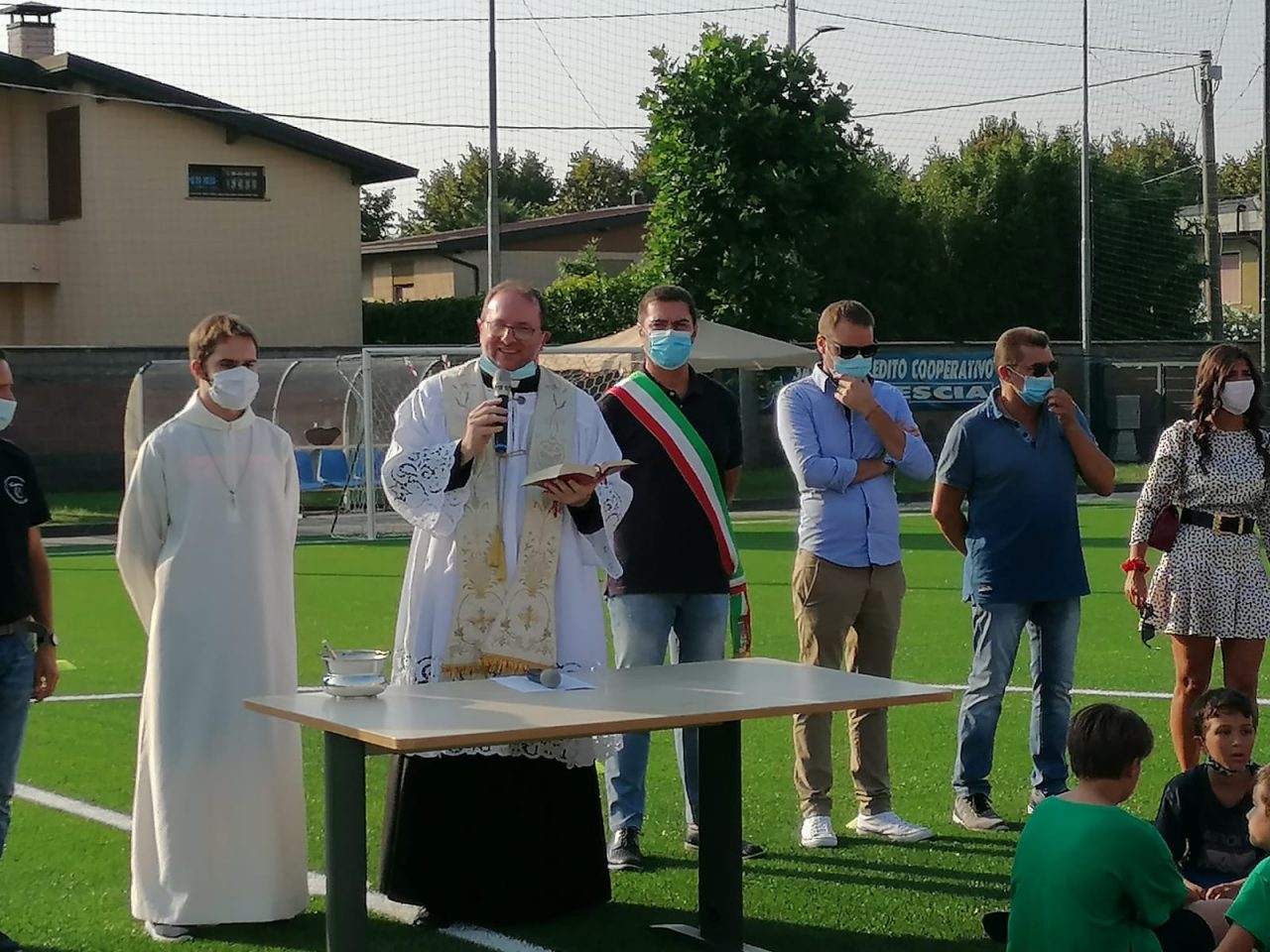 Dopo un pomeriggio di tornei, nei quali si sono sfidate la squadre dei pulcini di Pontoglio e dei paesi limitrofi, don Giovanni Cominardi, il sindaco Alessandro Giuseppe Seghezzi e il vicesindaco Alessandro Pozzi hanno inaugurato i nuovi campi sintetici dell’oratorio.
