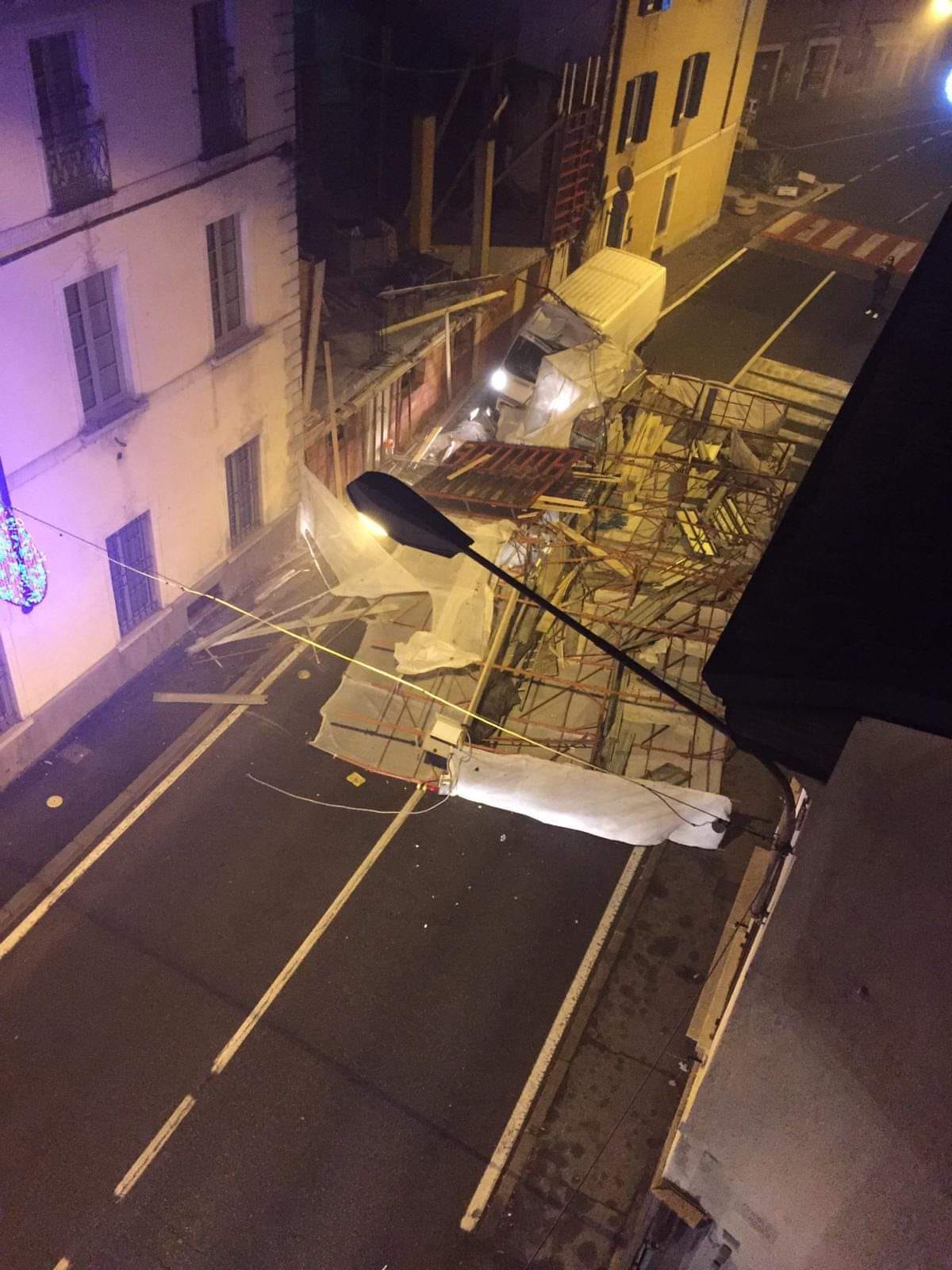 Abbattuti dei ponteggi lungo via Vittorio Emanuele a Coccaglio.