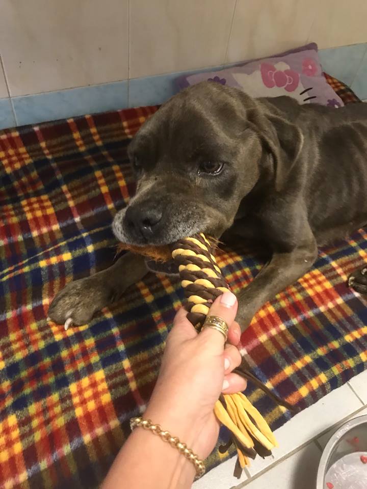 E’ stato ritrovato nel cremasco ai primi di marzo. Uno splendido cane corso che però era grissimo, le costole bene in vista, senza forze. Era senza forze ma, racconta chi lo ha trovato, quando lo si accarezza muove il codino mozzo.