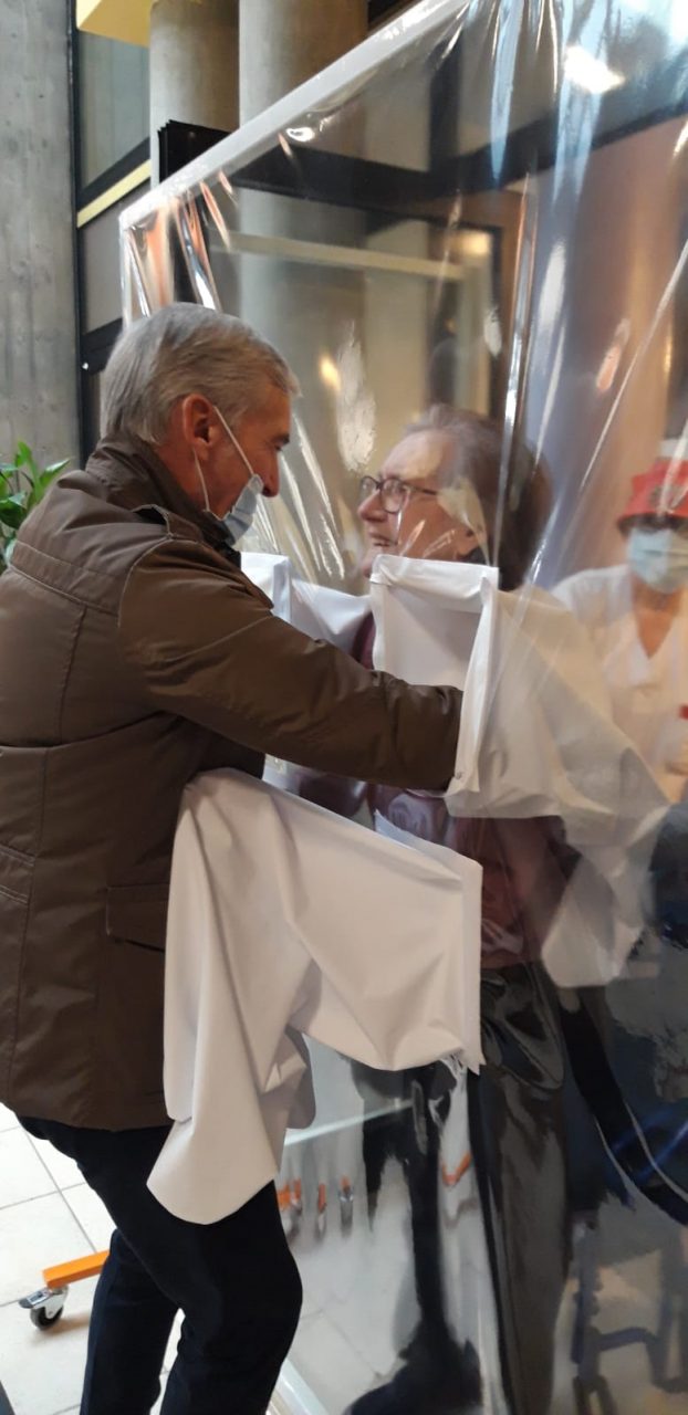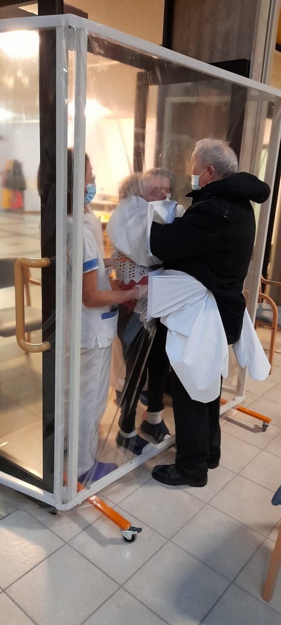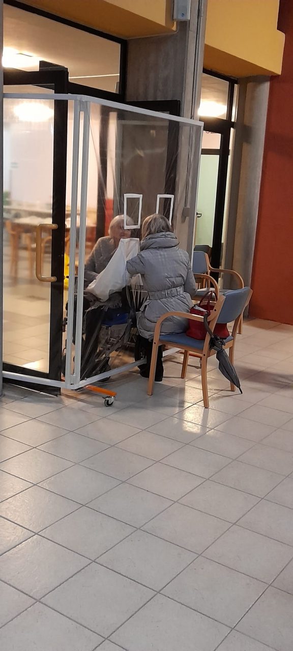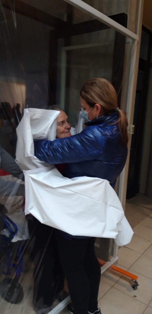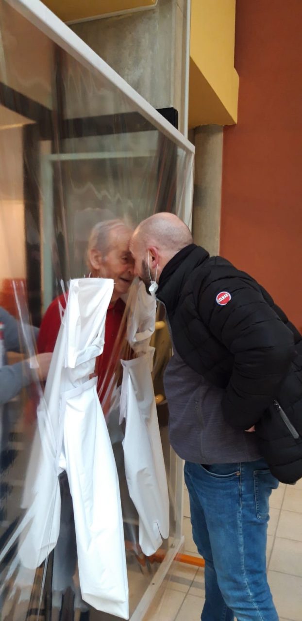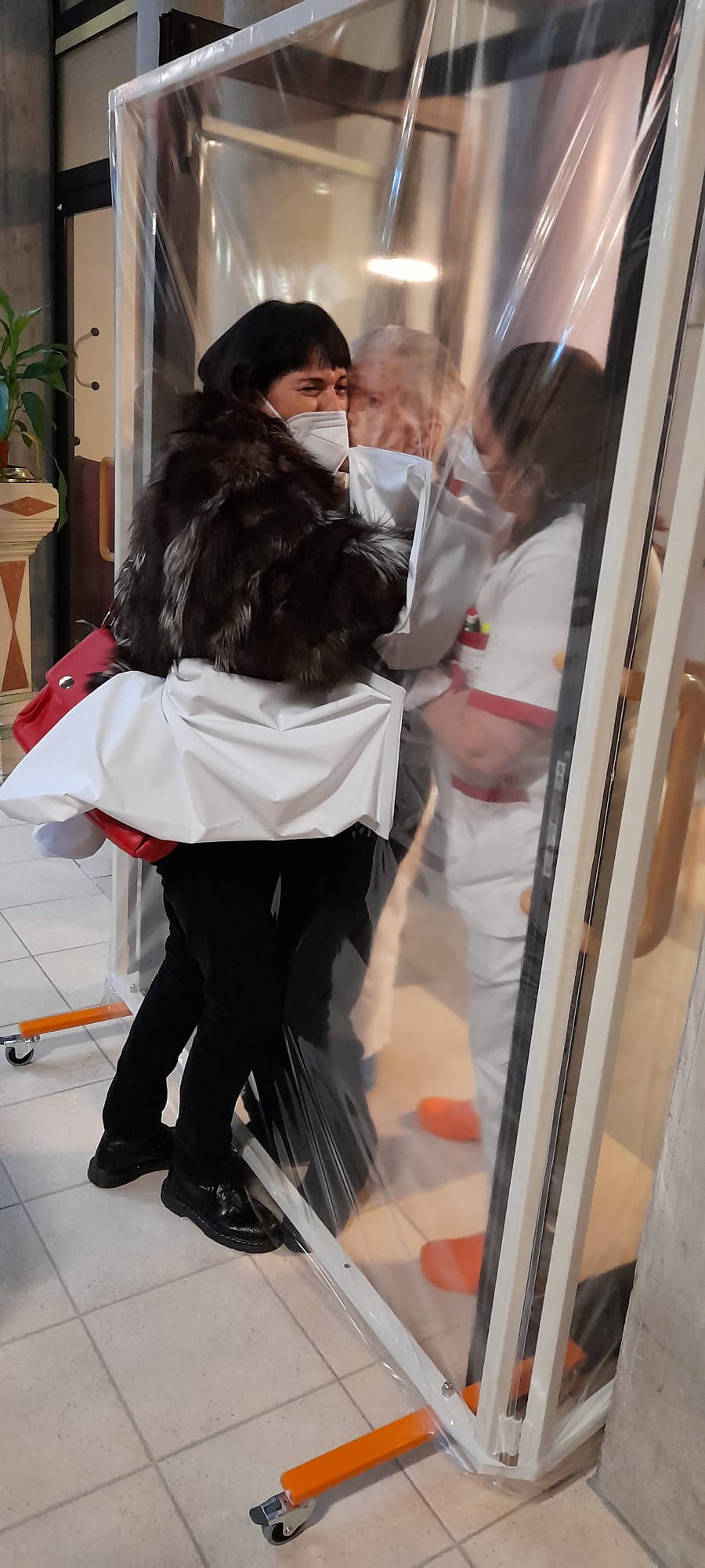 Per Lidia, un’anziana ospite sulla settantina, sarebbe dovuta essere una mattinata come tante. La sveglia, la colazione, poi una passeggiata fra i corridoi della casa di riposo assieme alle sue fisioterapiste, per poi tornare nella propria stanza accudita dal personale della casa di riposo. Invece è arrivata la sorpresa: ad aspettarla nello stanzone, dietro a una parete trasparente, c’era il marito. Il primo visitatore da quando a settembre la Rsa ha chiuso l’accesso ai famigliari per proteggere i nonni dalla seconda ondata del Covid. Il primo a infilare le mani nei manicotti di tela e a donare a Lidia quello che aspettava da tempo: un caloroso abbraccio.