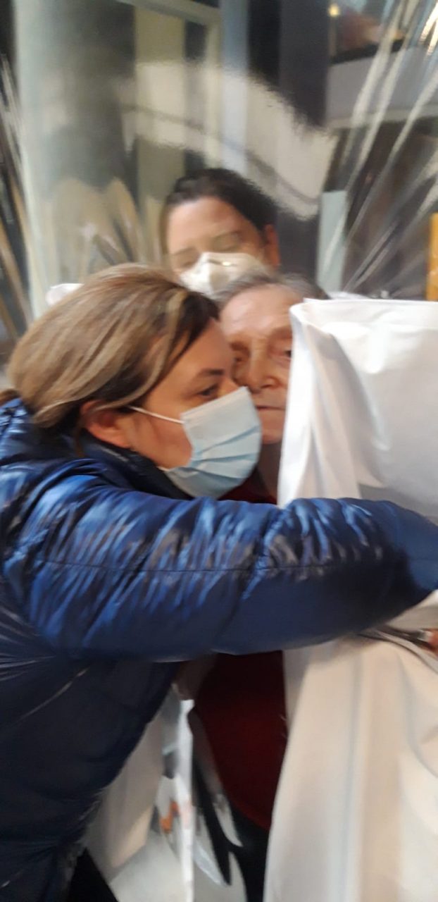 Un’emozione indescrivile. “Era da mesi che non abbracciavo mia moglie”, ha raccontato. E così è stato anche per Claudia, che da marzo non stringeva papà Angelo, e per Donatella, che non ha sprecato un minuto della visita con sua mamma Maria. Togliersi la mascherina ancora non si può, a separare i congiunti poi c’è ancora una barriera, ma il sorriso e la felicità del momento si leggeva negli occhi. Occhi lucidi, sì, ma di lacrime di gioia.