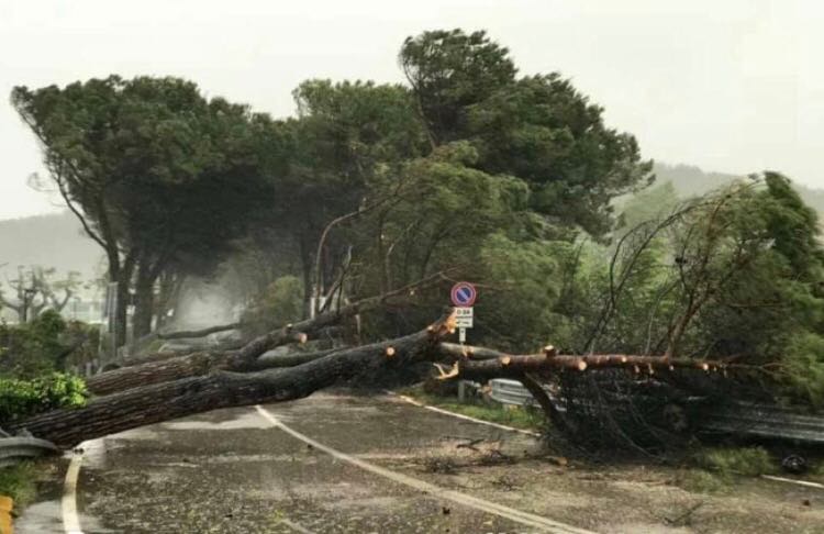 Strada bloccata da Desenzano del Garda in direzione Padenghe a causa di una pianta caduta lungo la carreggiata.