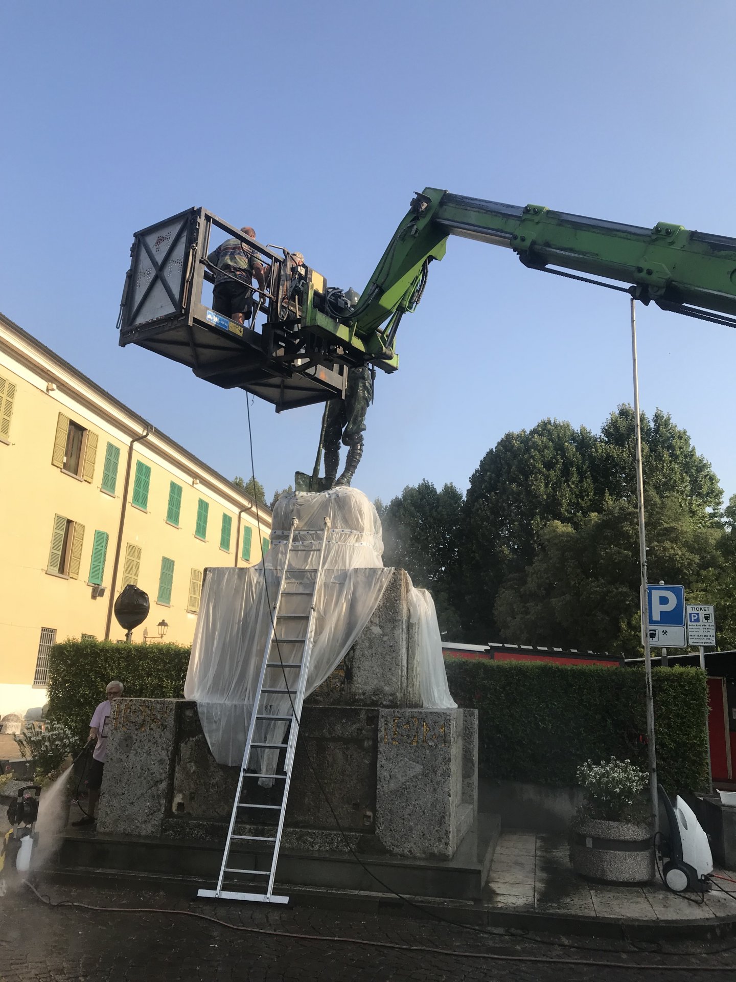 Penne nere all’attacco… contro lo sporco. Gli Alpini di Chiari questa mattina si sono messi all’opera, con tanto di supervisori, per ripulire il monumento ai Caduti di piazza Martiri della Libertà. Le operazioni, volte a non rovinare minamente il monumento, consistono nella pulizia con l’acqua spruzzata a pressione tale da rimuovere lo sporco che si è formato sulla superfice. Non verranno dunque utilizzate sostanze chimiche o abrasive, ma al termine verrà applicato un idrorepellente per garantire una migliore conservazione.