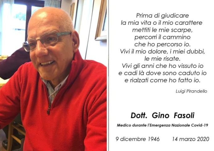 La figura di Gino Fasoli non può che essere d’ispirazione per le generazioni future. Nato a Sulmona il 9 dicembre 1946, non ha avuto un’infanzia facile. La sua mamma era una ragazza madre e nel 1960 anche lei è venuta a mancare; Gino e il fratello Gabriele, di quattro anni più piccolo, trovarono ospitalità dai Frati minori del convento di Tocco da Casauria, in provincia di Pescara. Grazie all’aiuto del fratello (che nel frattempo si era arruolato nell’esercito e lavorava per la Nato), Gino riuscì completare gli studi di Medicina, specializzandosi negli Stati Uniti. A portarlo in Lombardia, prima a Trescore e poi a Cazzago, fu l’amicizia con Fabrizio Rigamonti (l’ex sindaco di Capriolo). Medico, ma anche presidente dell’Unitalsi Brescia, Fasoli accompagnava ogni anno gli ammalati a Lourdes; è stato sostenitore di Emergency e di Medici senza frontiere. Dopo la pensione, quando esplose la pandemia, Gino ricevette una chiamata, che gli chiedeva la disponibilità a rientrare al lavoro per sostituire i medici malati. Il 6 marzo 2020, però, pochi giorni dopo aver ripreso il servizio, iniziò a stare male. Il 10 marzo non riusciva nemmeno più a parlare al telefono col fratello. Fu l’amico Fabrizio a soccorrerlo nella sua casa di Passirano e a farlo trasportare in ambulanza alla clinica San Rocco di Ome, dove spirò il 14 marzo. Ma la sua testimonianza d’amore è ancora qui, in mezzo a tutti noi.