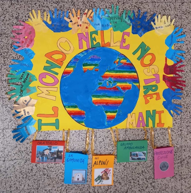 La primaria di Pedrocca ha realizzato «Il mondo nelle nostre mani», un grande cartellone con le mani dei bambini e una presentazione Power Point. I bimbi hanno anche raccolto le testimonianze di persone impegnate nel volontariato: Alpini, Gruppo Ambulanza, Protezione civile ecc.