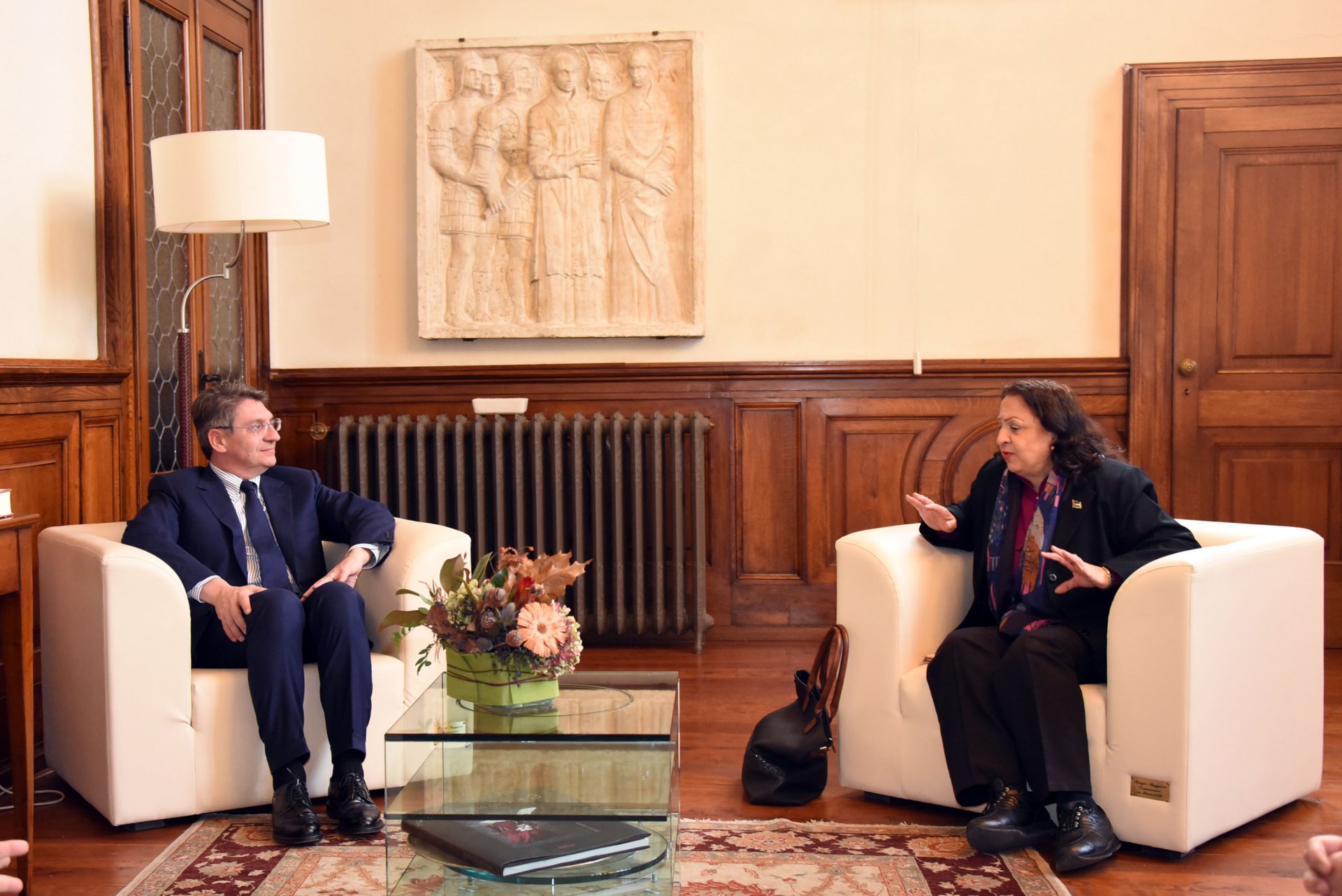 Il sindaco Emilio Del Bono, ha incontrato l’ambasciatrice di Palestina in Italia Mai Alkaila, presente in città per partecipare al Festival della pace.
