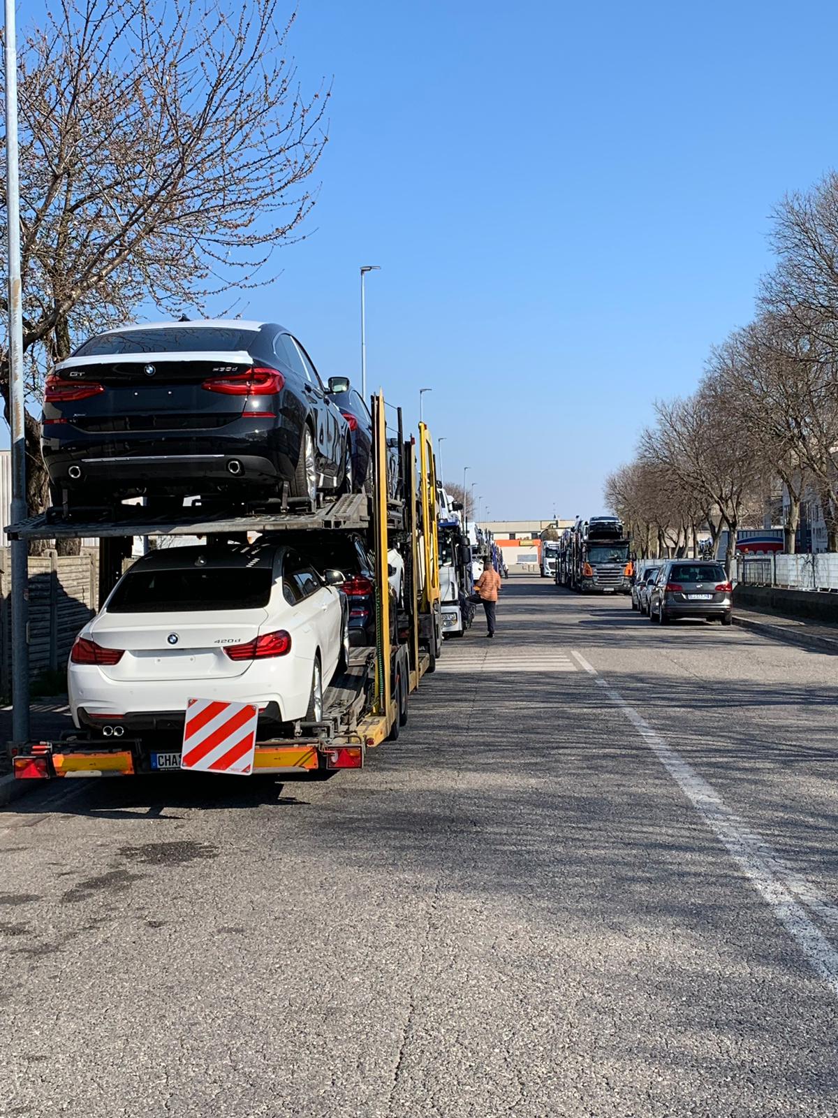 I camion stanno arrivando e occupando tutti i posti liberi da ambo i lati della strada
