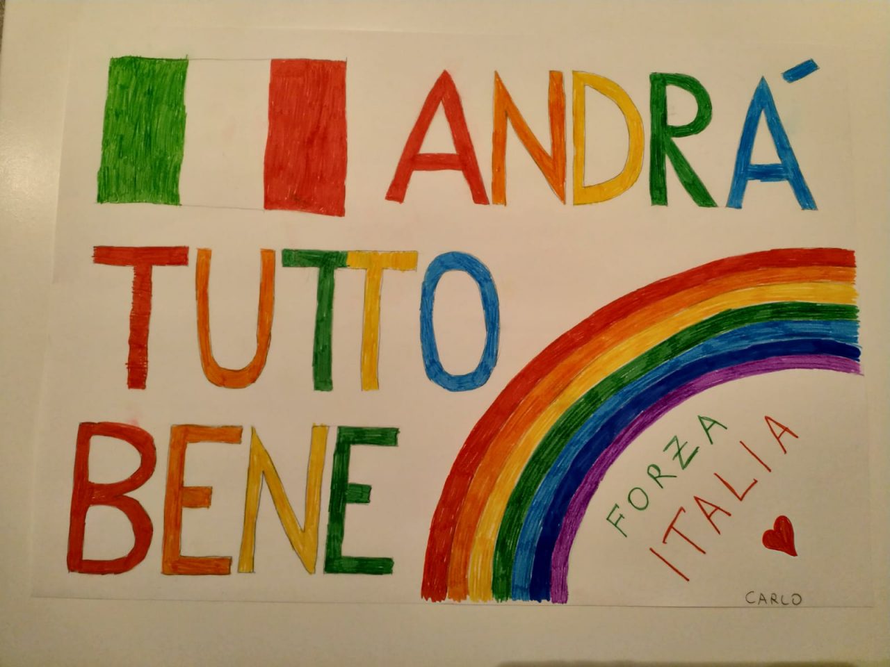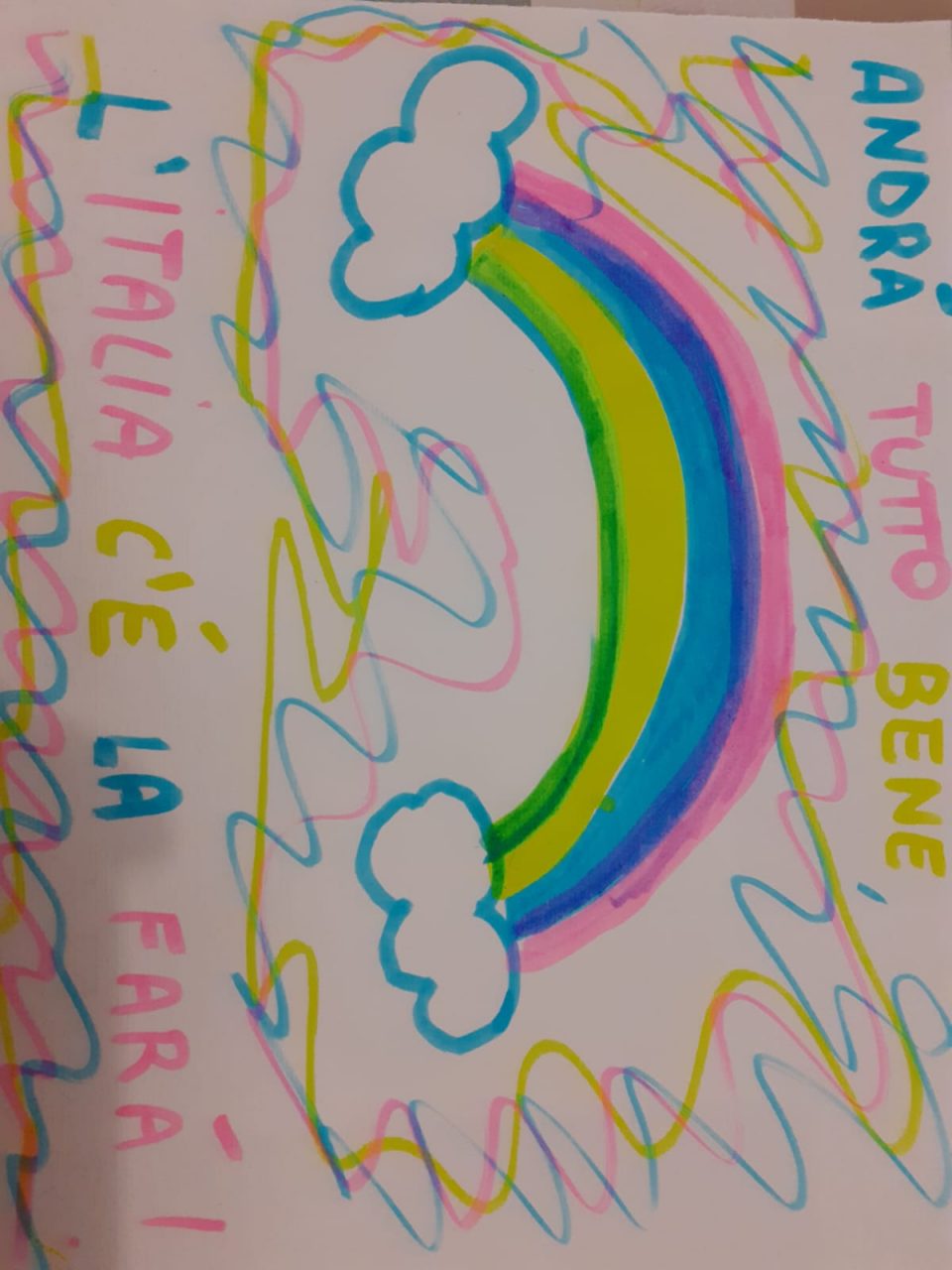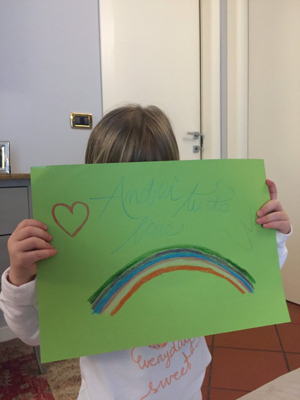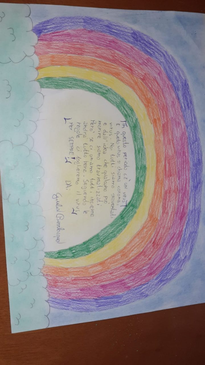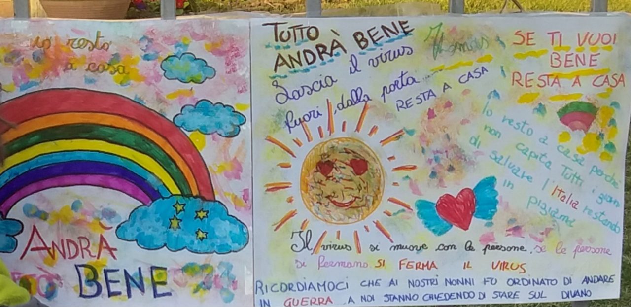 Ecco che in queste settimane anche i più piccoli vogliono guardare con ottimismo alla situazione attuale, reagendo simbolicamente all’emergenza coronavirus disegnando un arcobaleno accompagnato dalla frase “Andrà tutto bene”, che poi viene appeso fuori dal balcone o dal cancello della propria casa.