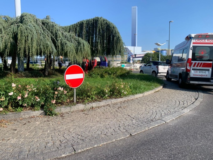 Attimi di apprensione in via Malta a Brescia, anziana finisce fuori strada.