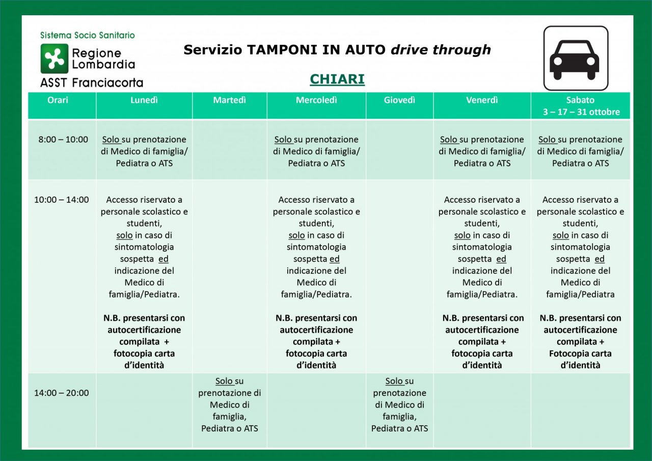 L’autunno è alle porte e con esso i timori di una recrudescenza dell’epidemia da Coronavirus. L’Asst Franciacorta ha studiato un piano, ma anche messo a disposizione i tamponi in auto a Chiari e Iseo.
