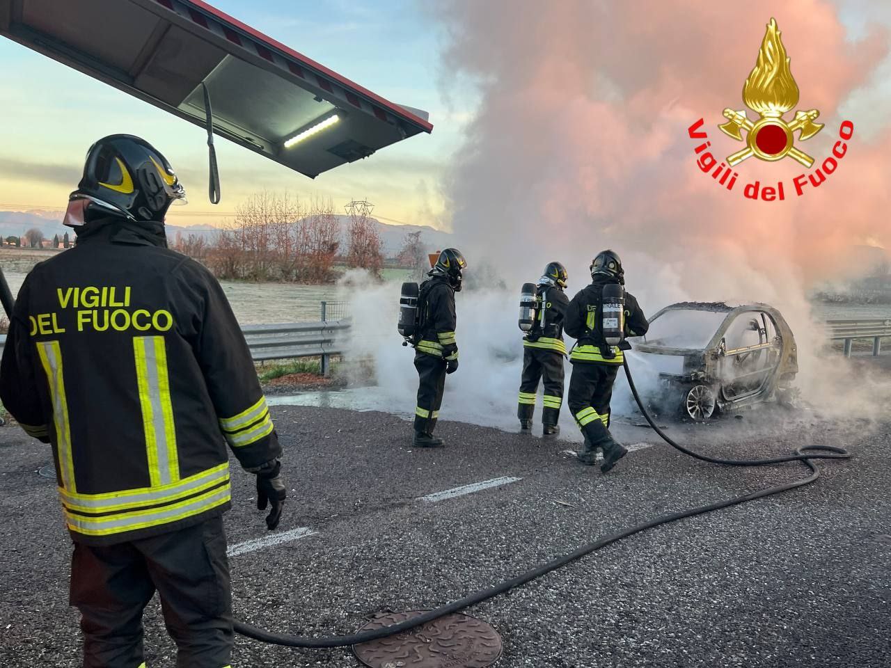 Attimi di apprensione questa mattina (lunedì 15 dicembre 2025) sulla A35Brebemi a Rovato in direzione Milano. L’allarme è scattato verso le 7: per cause ancora da verificare nel dettaglio un’auto ha preso fuoco. La buona notizia è che la persona che si trovava a bordo del mezzo è riuscita a scendere in tempo senza alcuna conseguenza. Ad intervenire prontamente sul posto la polizia stradale di Chiari e i Vigili del Fuoco di Brescia.
