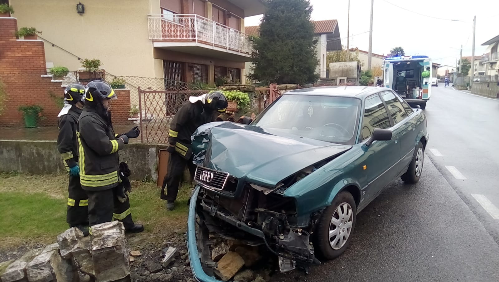 Un’auto è finita contro la cinta di un’abitazione in via Milano, al civico 27 di Lodetto di Rovato.