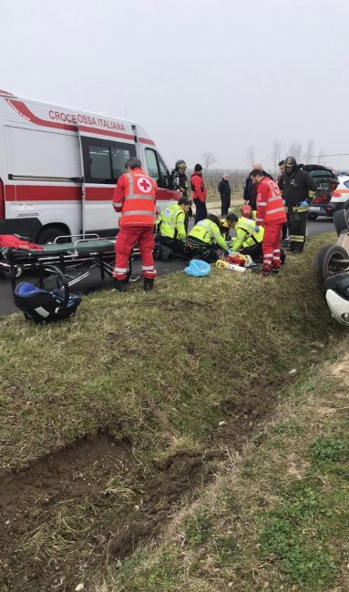 Auto fuori strada a Pozzolengo in località Vaibò, trasportato in elicottero bimbo di 15 giorni in codice rosso.