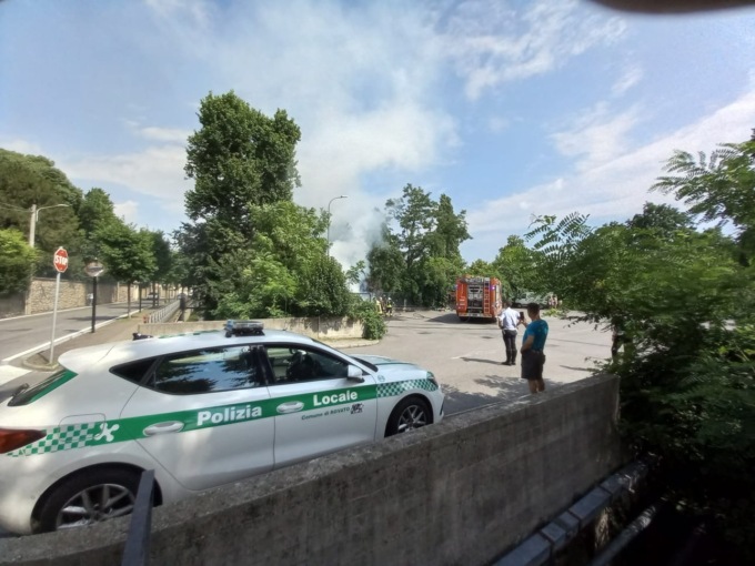 Attimi di grande apprensione quelli vissuti nel pomeriggio di oggi (sabato 10 giugno 2023) a Rovato. A prendere fuoco un’autovettura in via Spalenza. In particolare l’auto si trova nel parcheggio che sorge nei pressi dell’ufficio postale del parco Aldo Moro a Rovato. Ad intervenire sul posto la Polizia Locale, carabinieri, Vigili del Fuoco di Chiari. Sembra che all’origine vi sia stata un’autocombustione del veicolo. Il conducente si è fermato nel parcheggio vuoto proprio per evitare di arrecare danni.