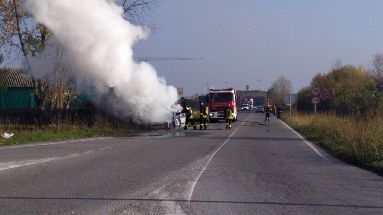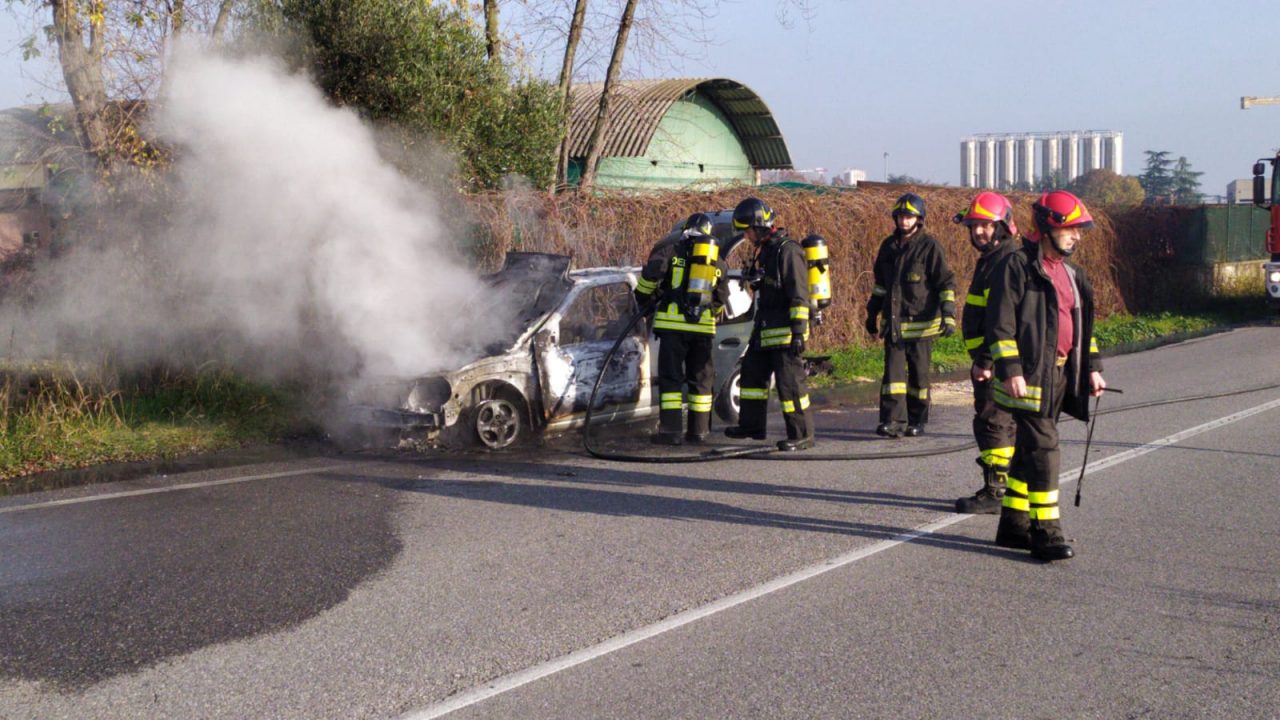 Auto in fiamme tra Cazzago San Martino e Rovato.