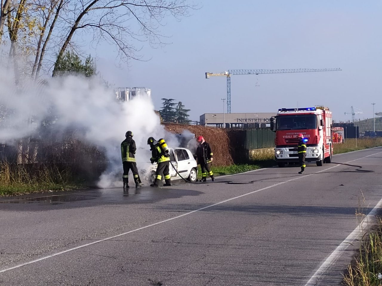 Auto in fiamme, sul posto i Vigili del Fuoco di Chiari