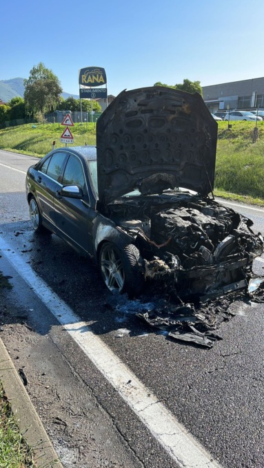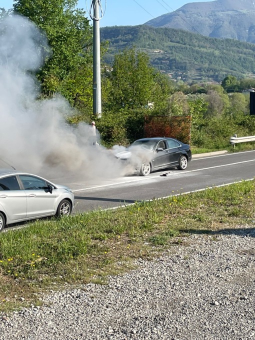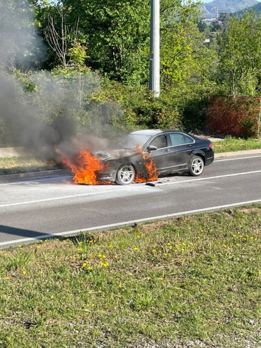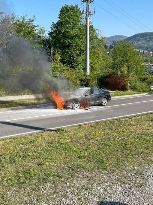 E’ scattata nella mattinata di giovedì 27 aprile la chiamata ai soccorsi per un’auto in fiamme sulla provinciale, tra Capriolo e Paratico.