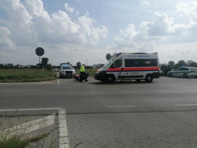 Auto si scontra con uno scooter e finisce nel fosso, è successo nel primo pomeriggio a Calcinato.