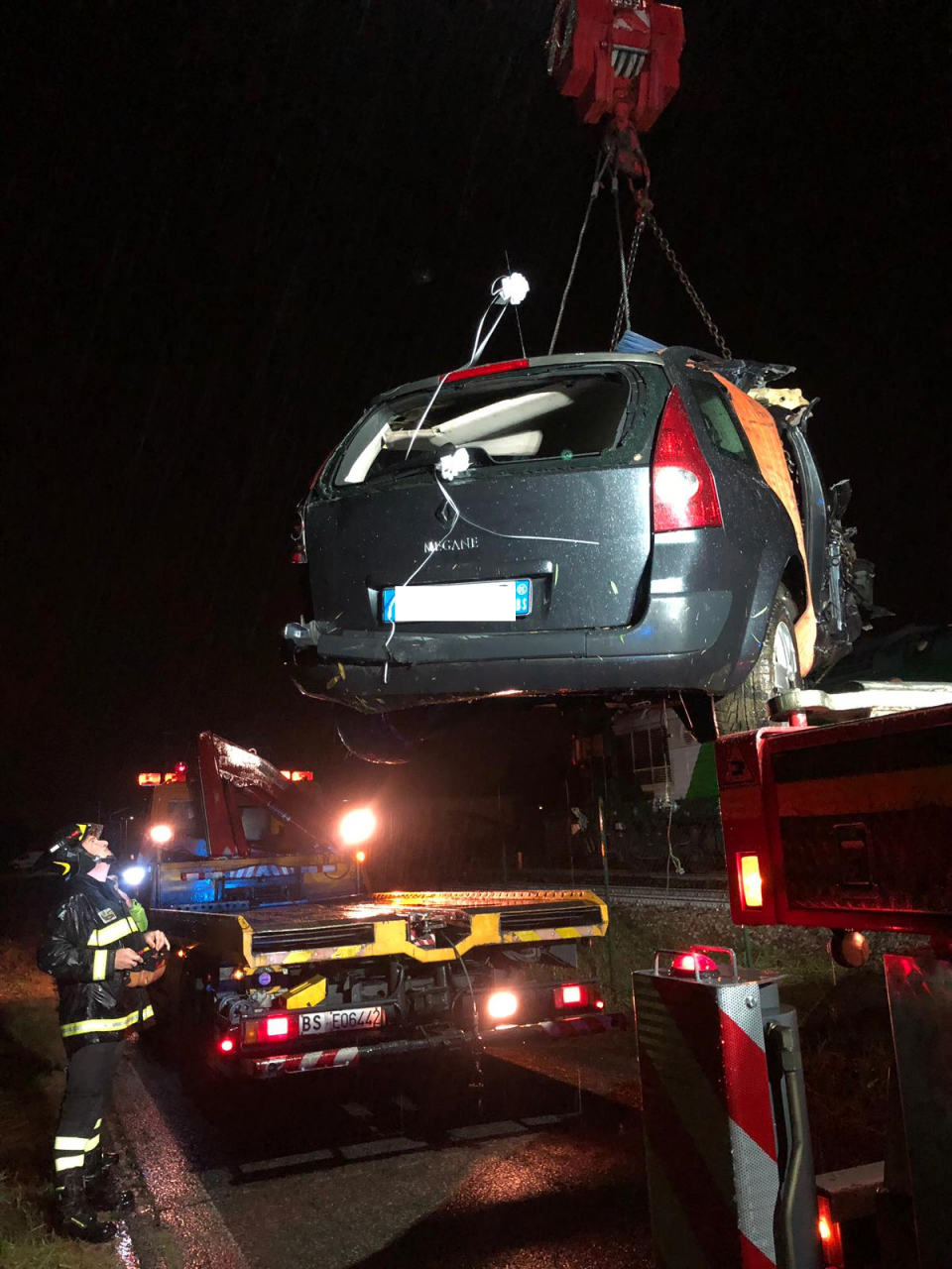 Auto travolta sui binari a Corte Franca. E’ successo alle 19.50 circa all’altezza della stazione di Borgonato, un treno della linea Brescia-Iseo-Edolo ha preso in pieno una Renault.