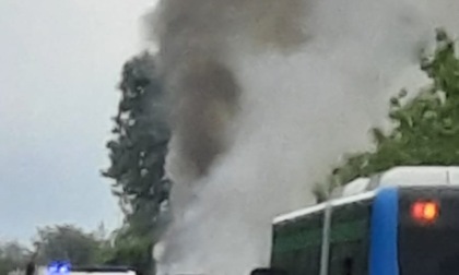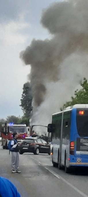 Autobus in fiamme sulla provinciale, paura per l’autista e gli studenti a bordo