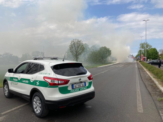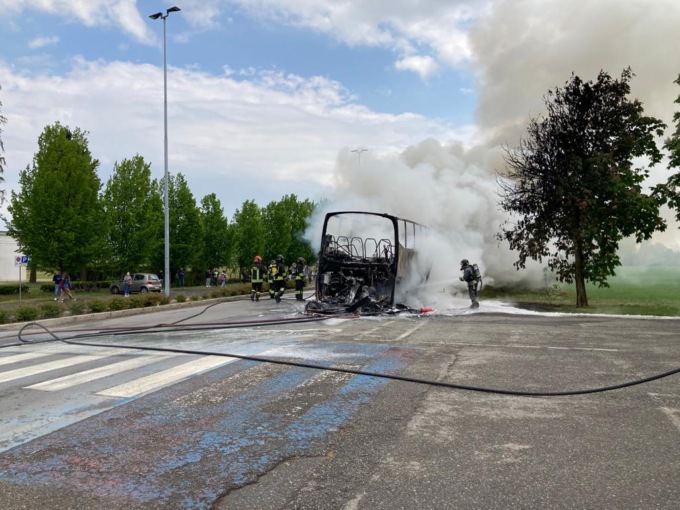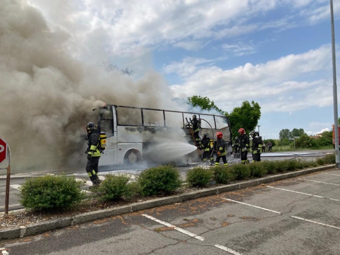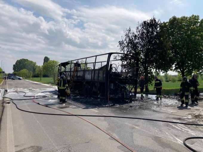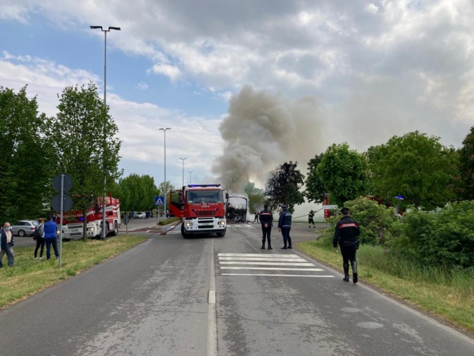 Ha quindi lasciato il mezzo sulla strada e fatto scendere tutti i passeggeri, per poi controllare il retro, dove ha notato le fiamme. Ha provato a spegnere l’innesco con un estintore ma non c’è riuscito. Allora ha chiamato i soccorsi. Dal mezzo in fiamme si è alzata una colonna di fumo visibile a chilometri di distanza, che ha subito allarmato tutti. Allertati, i Vigili del Fuoco volontari di Chiari e di Orzinuovi si sono subito recati sul posto: in questo momento sono in corso le operazioni per domare l’incendio.