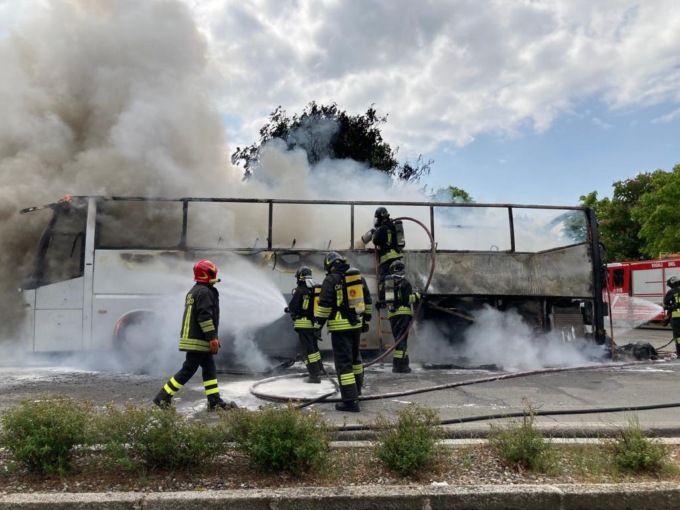 Quando agli studenti, inizialmente riuniti in un’area sicura lontana dalle fiamme, sono stati recuparati da un secondo pullman inviato dall’azienda e riportati alle loro case.