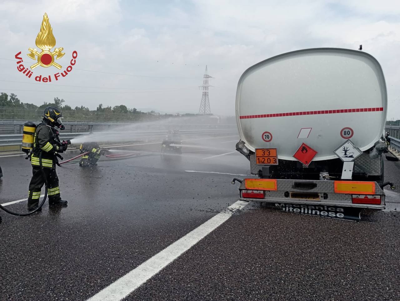 Autocisterna prende fuoco, pompieri al lavoro