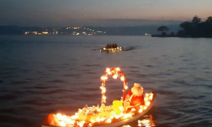 Babbo Natale ieri è arrivato a Gardone Riviera a bordo della sua imbarcazione.
