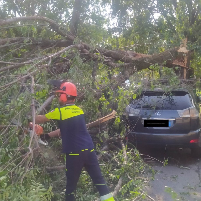 Gli alpini hanno rimosso per tempo un albero ad alto fusto in bilico sopra la casa albergo locale; la Protezione Civile comunale con l’utilizzo di idrovore ha liberato dall’acqua il sottopasso di via Marconi. In via Salvo d’Acquisto sono state rimosse piante cadute su cinque auto in sosta. Nella scuola vecchia di viale Stazione è volato via parte del tetto finito sulla strada. Già ripristinata la viabilità. Su via Montirone 15 alberi sono caduti sulla linea 380.