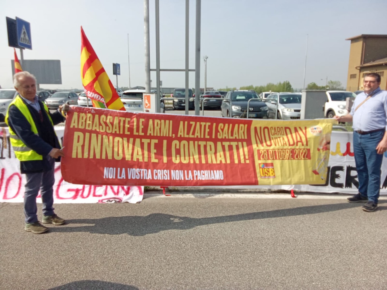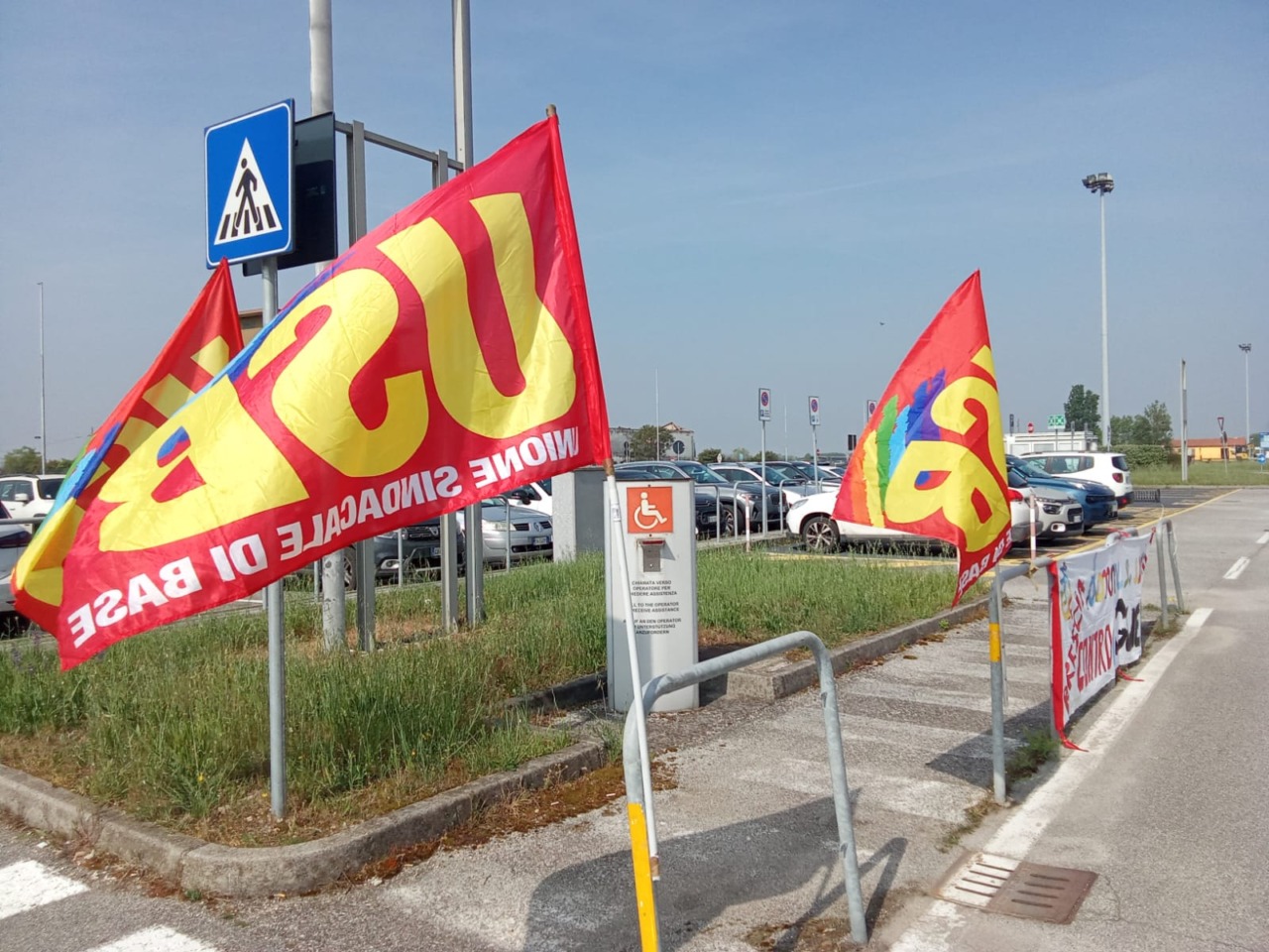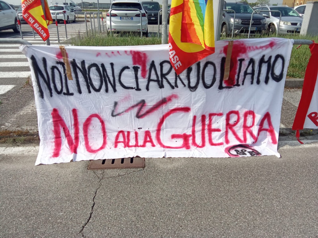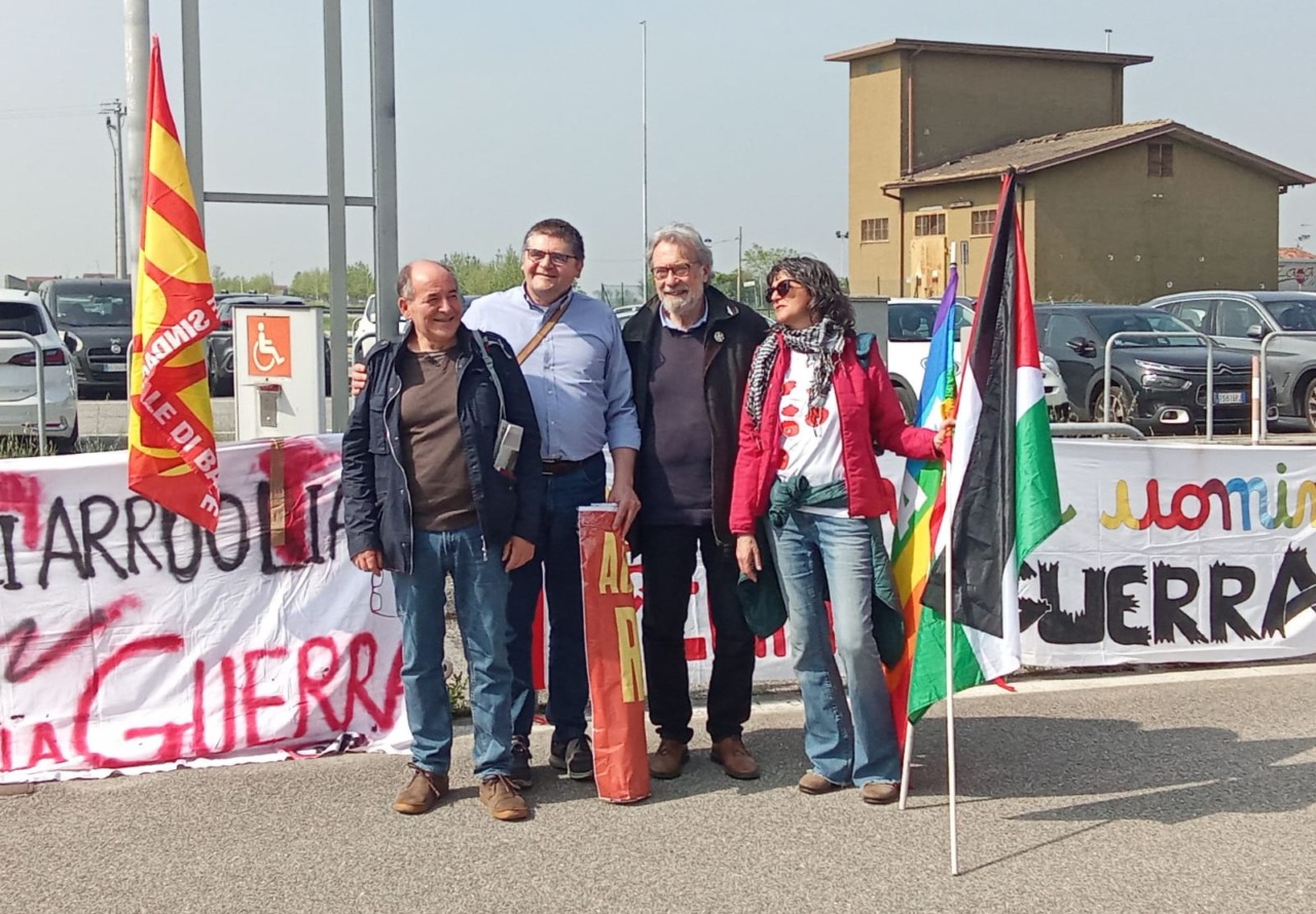 E’ cominciato questa mattina (giovedì 16 aprile 2026) attorno alle 11 all’aeroporto “D’Annunzio” la manifestazione indetta dall’Unione sindacale di base, per protestare contro l’impiego di personale civile per rifornire di materiale bellico le forze in campo in Medio Oriente.