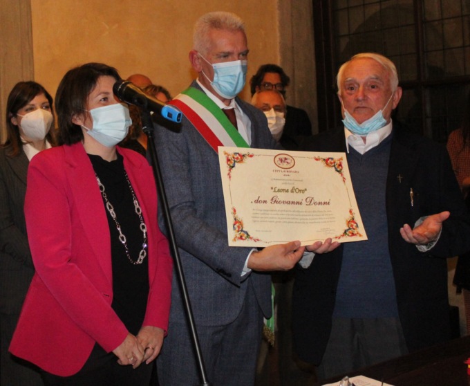 Giovedì nella sala del Pianoforte si è svolto il Consiglio comunale straordinario per il conferimento dei Leoni d’oro, massimi riconoscimenti civici. Una cerimonia davvero molto toccante e partecipata, in cui sono state lette le motivazioni che hanno spinto l’Amministrazione rovatese a premiare pubblicamente l’impegno e la dedizione di don Giovanni Donni e Alessandro Marchi. In apertura la presidente del Consiglio Roberta Martinelli ha ringraziato le autorità militari presenti (in rappresentanza di Polizia Locale e Guardia di Finanza), il presidente di Cogeme spa Dario Lazzaroni e il parroco don Mario Metelli, che ha espresso il plauso al fatto che vengano riconosciute “le cose positive, è bello sentirsi parte di una comunità dove ci sono queste energie”. Il sindaco Tiziano Belotti si è congratulato con don Donni e Marchi, definendoli “due pilastri della città. Marchi ha ritirato il riconoscimento con palpabile emozione, rivelando che gli manca solo un desiderio incompiuto per la sua banda: l’acquisto di un pulmino (visto che per 60 anni è stato sempre utilizzato il suo). Don Donni si è invece complimentato con l’Amministrazione per il lavoro fatto per riportare a Rovato una parte dell’archivio antico comunale: “Possiamo finalmente presentare a tutti una documentazione che in provincia nessuno possiede, la sede diventerà un fiore all’occhiello per il paese”.