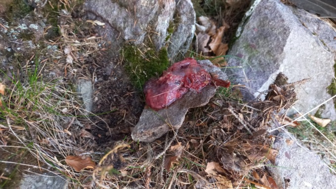 L’agente sole è riuscito ad individuare in breve numerose esche. In particolare, nel corso delle operazioni di bonifica, a circa 1.450 metri di quota, la pattuglia composta dagli agenti delle Provinciali di Bergamo e Brescia, insieme a Sole, si è inaspettatamente imbattuta in un uomo intento a maneggiare esche, intinte in un liquido bluastro, simile a quello già rinvenuto su altri bocconi raccolti in precedenza. Ormai alle strette, il bracconiere, che aveva guanti sporchi di sangue con i quali teneva un sacchetto colmo di bocconi avvelenati, non ha potuto che assumere un atteggiamento collaborativo. L’uomo, della zona, si è giustificato dicendo di aver agito per difendere il suo bestiame dai lupi – una trentina quelli che vivono tra la Val Seriana e la Val di Scalve – che lo scorso anno avevano attaccato due capretti. Ha, poi, guidato gli agenti per recuperare le esche già disseminate nel bosco, nascoste nella vegetazione.