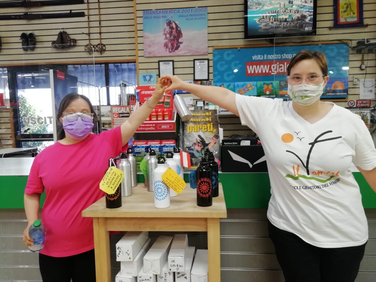 Ecco che ieri sera i ragazzi della onlus Il Vomere di Travagliato hanno consegnato al negozio Gialdini Brescia le borracce da loro dipinte, che da oggi saranno vendute agli sportivi della città.