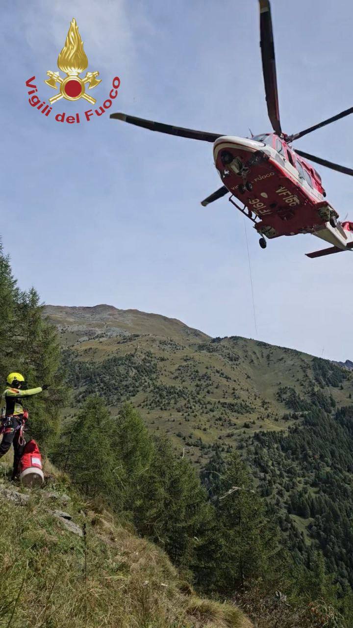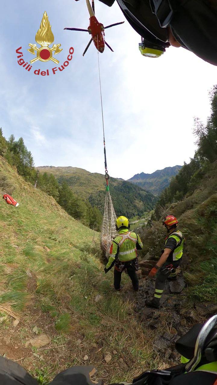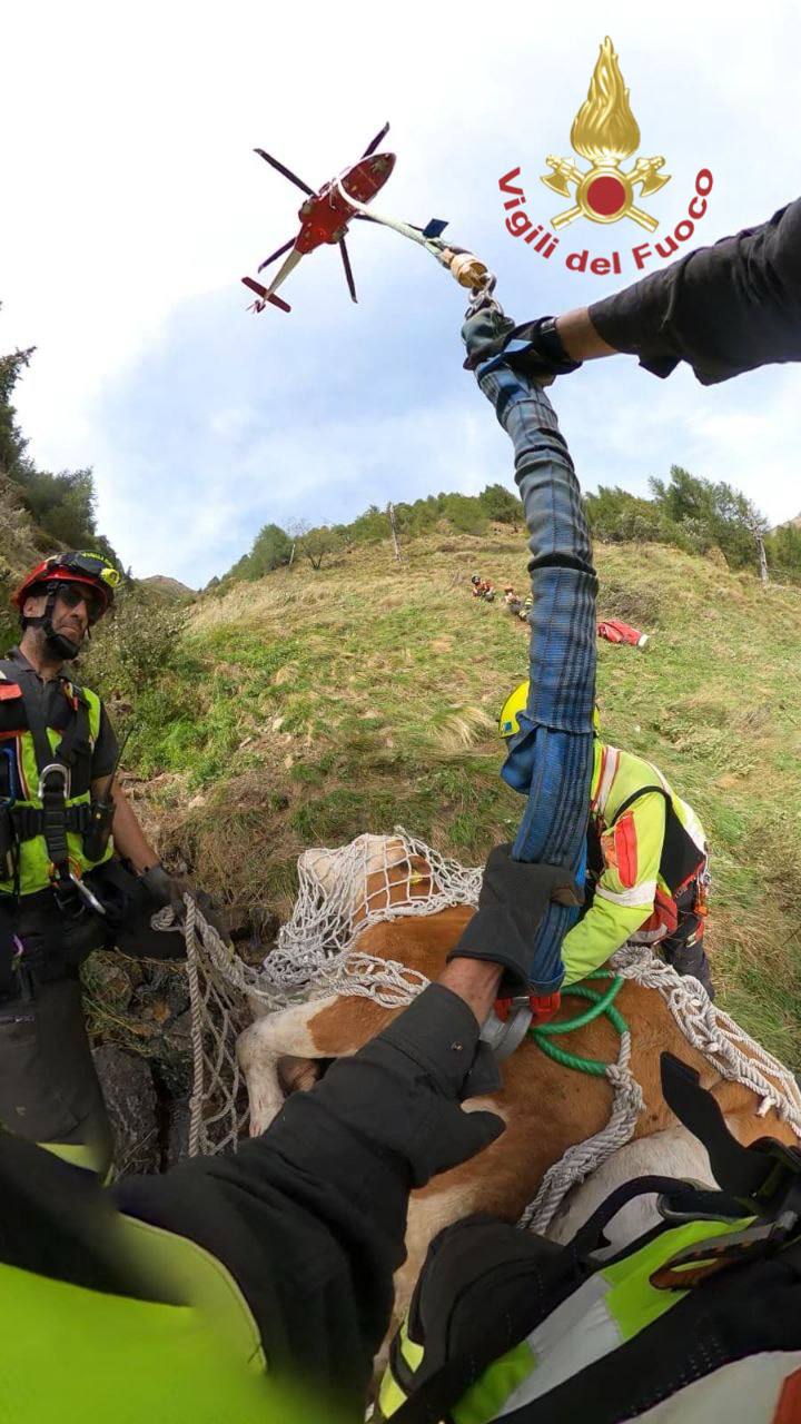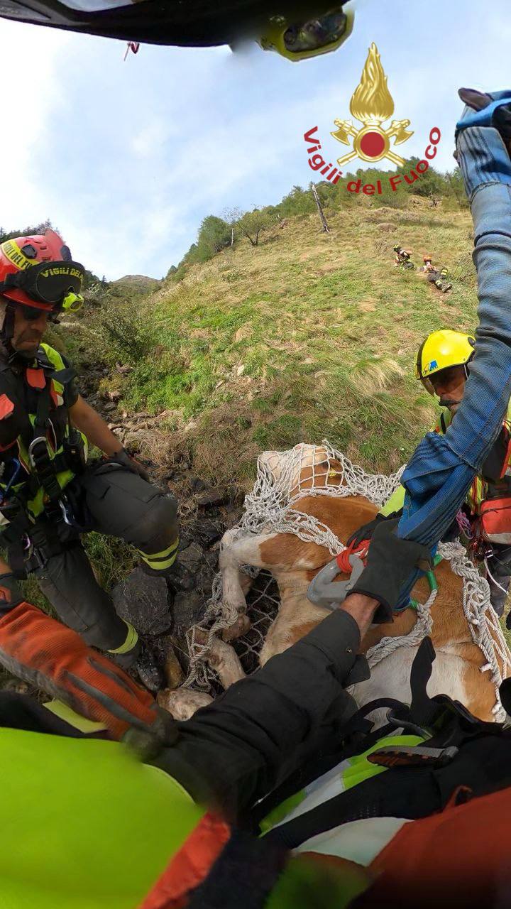Ad intervenire prontamente sul posto una squadra dei Vigili del Fuoco di Vezza d’Oglio: con il supporto di EliVf Drago 166, partito da Varese sono riusciti a recuperare il bovino che è stato quindi portato in sicurezza dove lo attendeva il veterinario.