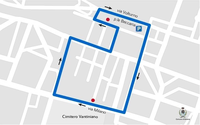 Anche quest’anno, in occasione delle festività di Ognissanti, nella giornata di giovedì 1° novembre Brescia Trasporti attiverà, su richiesta dell’Amministrazione Comunale, un servizio navetta gratuito di collegamento dal parcheggio di piazzale Beccaria (Iveco) al cimitero Vantiniano. La navetta “Piazzale Beccaria-Vantiniano” sarà attiva con passaggi ogni 10/12 minuti, ed effettuerà il percorso con le seguenti fermate: piazzale Beccaria (capolinea), via Volturno, via Sebino, via Milano (fermata cimitero Vantiniano), via Trivellini, via Carducci, via Madre Teresa di Calcutta, via Zamboni e piazzale Beccaria (capolinea).