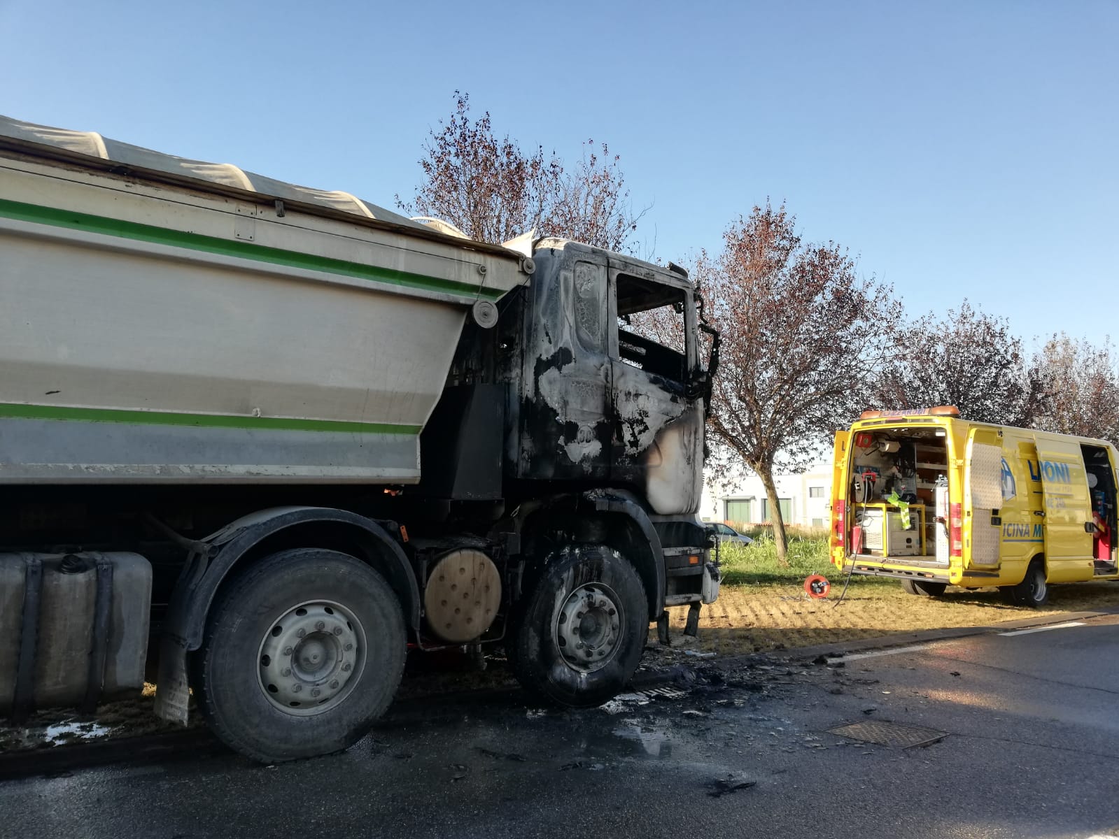 Camion a fuoco nella zona industriala poco dopo le 8 di questa mattina.